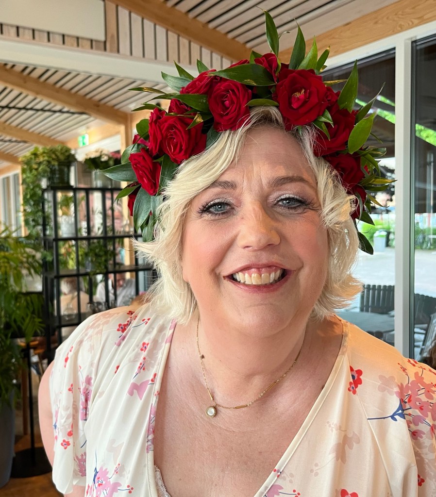 Min goda vän Madeleine har fyllt 50 år i veckan och ikväll har hon haft fest på Kroatorpet i Huskvarna. Det har varit en jättetrevlig tillställning med många goa härliga människor. Det var vackra tal och mycket kärlek. Det är roligt med tal för man får alltid veta något nytt om jubilaren. Madeleine var så fin med en krans av röda rosor (som hon älskar) på huvudet. Hela festens glädje och kärlek speglade hennes person.