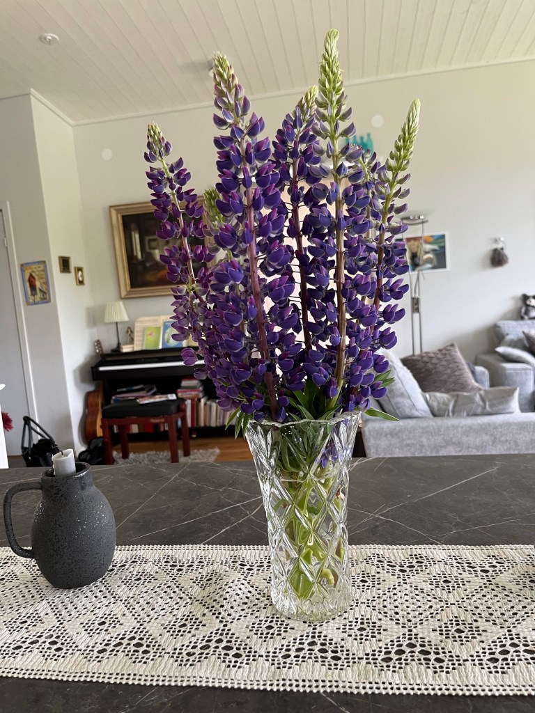 Jag har alltid gillat lupiner. De är vackra och ståtliga. På den tiden då jag arbetade i skolan som klasslärare hade jag ofta lupiner i klassrummet på avslutningsdagen. Det fanns gott om dem i vägkanterna och de gick snabbt att plocka. Det blev så fint i klassrummet.