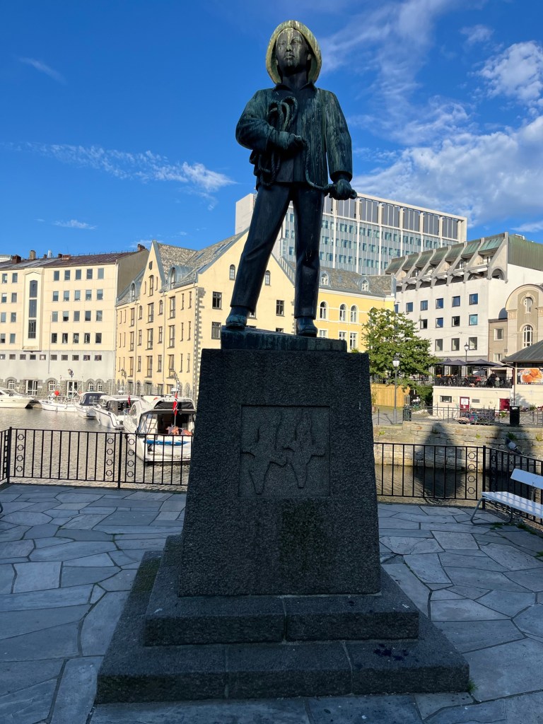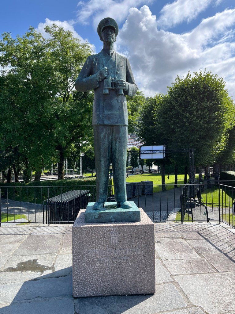 Sen gick jag till Bergenhus Fästning. Där fanns bl a en staty föreställande kung Haakon VII. Han levde 1872 – 1957 och var Norges kung från 1905 till 1957.
