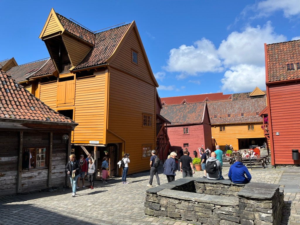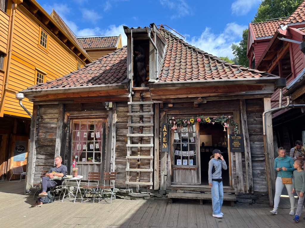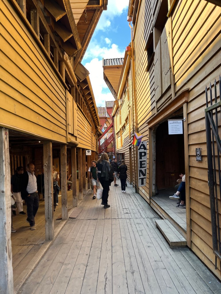 Så var vi hemma i härliga Bergen igen. På eftermiddagen och kvällen fortsatte jag att promenera runt i Bergen. Jag kollade i olika affärer och gick i vackra miljöer. Nedan ser vi Bryggens speciella miljö.