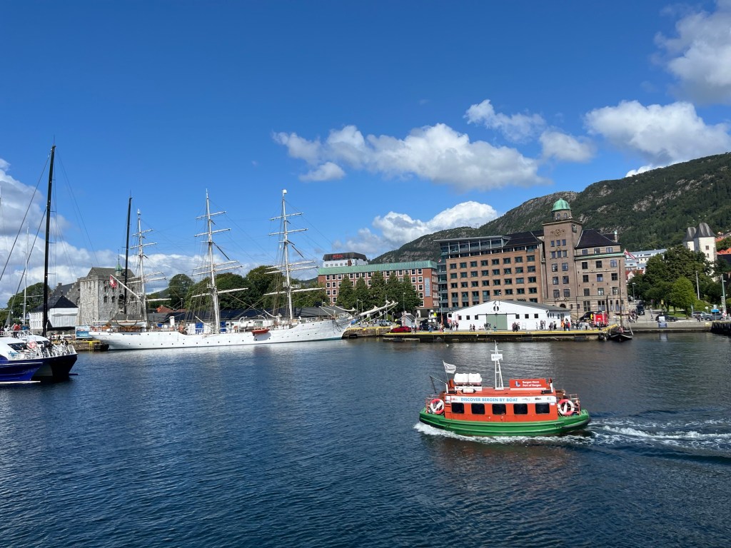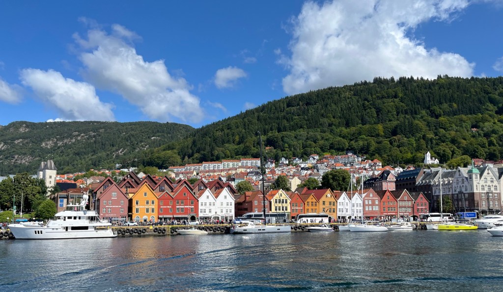 På eftermiddagen gjorde vi en fjordkryssning på Osterfjorden. Det var en tur på drygt 4 timmar. Nedan till höger ser vi Bryggens 13 fastigheter som finns med på UNESCOS världsarvslista. De är ett minne från Hansatiden då denna hamn var en betydelsefull handelsplats.