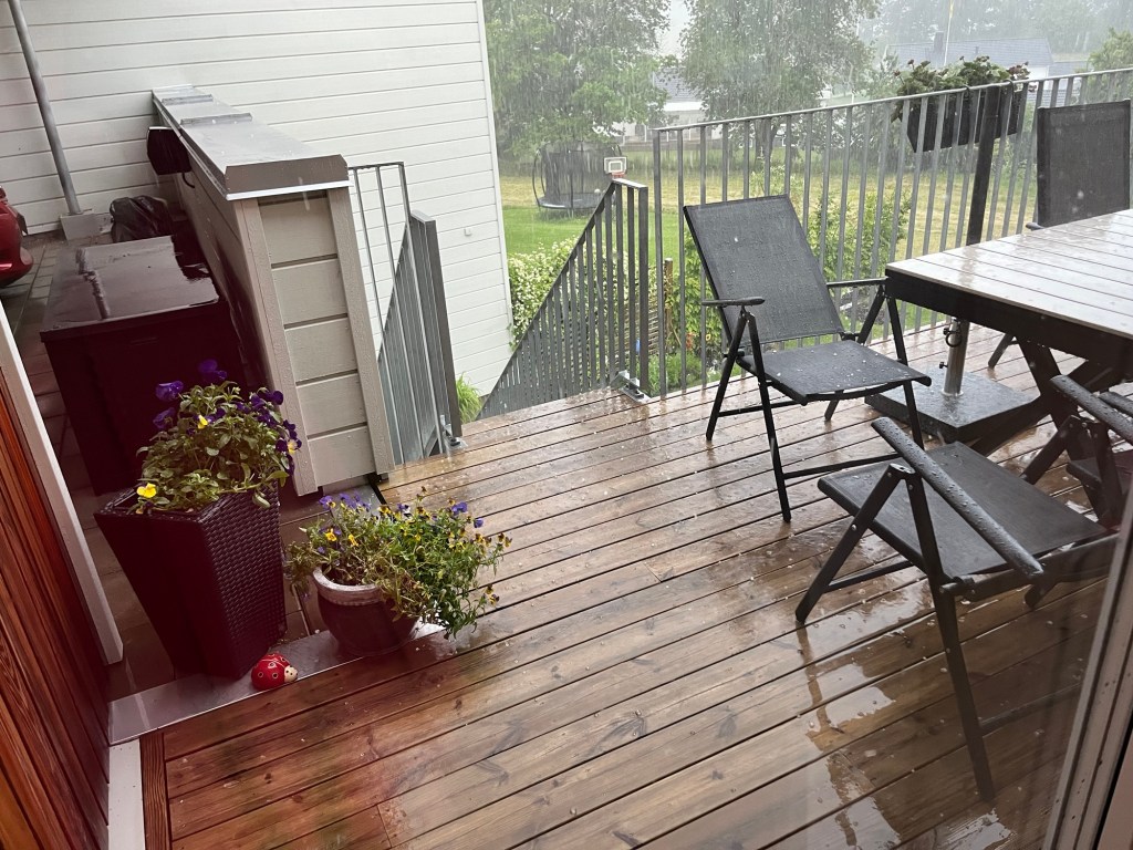 Efter några timmar började det åska och blixtra. Det regnade och haglade om vartannat. Det riktigt smällde av alla hagelkorn som virvlade ner.