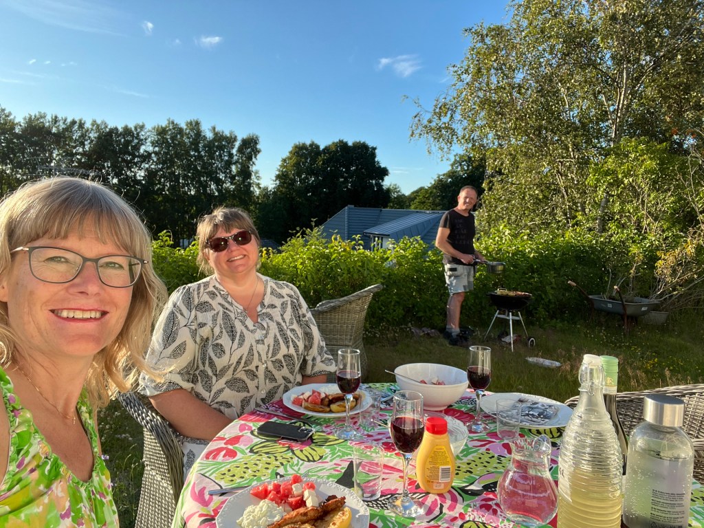 Senare blev det middag med gott grillat. Mums! Vi satt ute och njöt denna underbara sommarkväll.