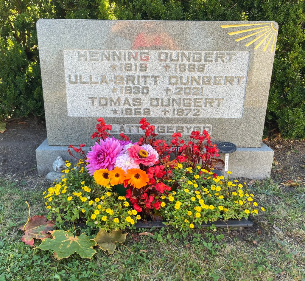 Innan jag åkte från Jönköping plockade jag en del av mina egenodlade dahlior, zinnior och ringblommor. Det kändes fint att få sätta dessa underbara blomster på gravarna i Kristvalla.