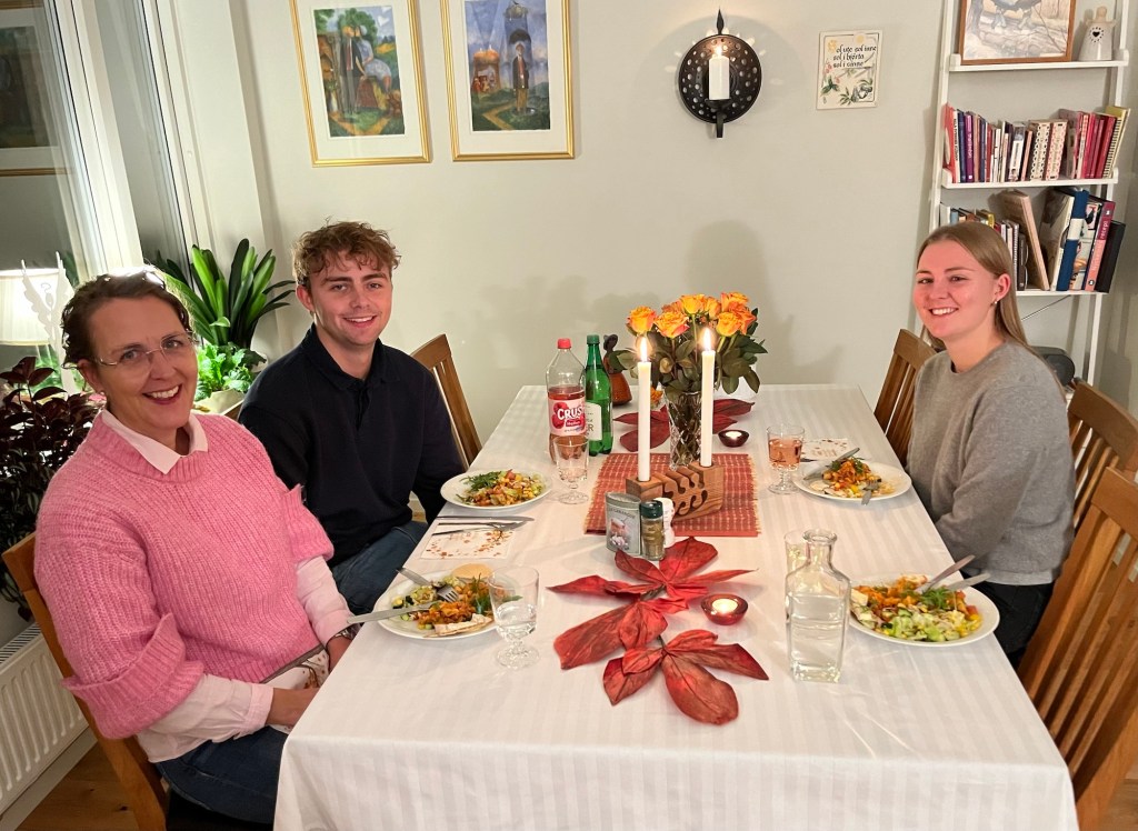 När vänskapsfamiljen är på besök kan man inta viloläge i sofforna. Jag är glad och tacksam över dessa goda fina vänner, ”syster” Susanna med sina goa härliga barn (ungdomar) 😃😃 Sam och Annie! 🧡🧡🧡 Mycket roligt har vi haft under årens lopp och hela framtiden tillhör oss. Vänskap, vilket vackert ord! 🧡