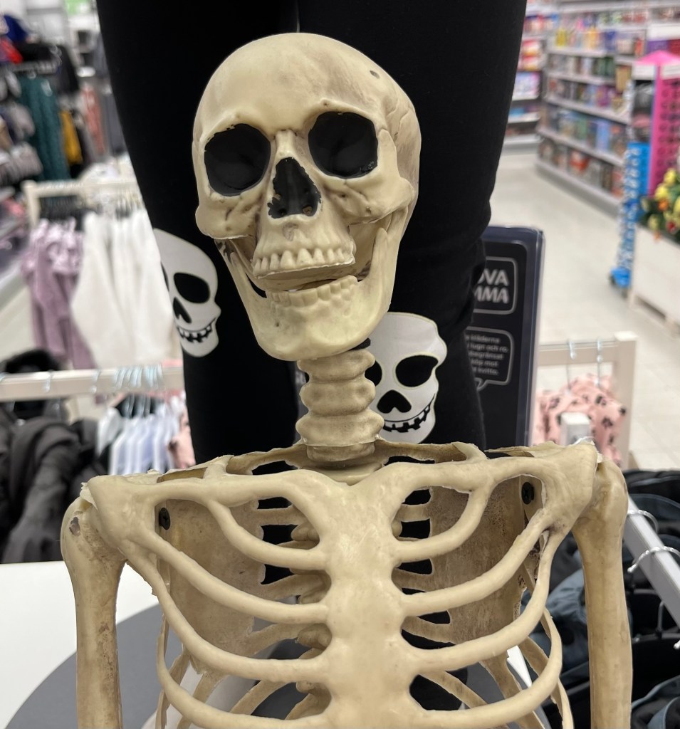 Håller du med? Det har pyntats med dödskallar, spindelnät, skelett m m i god tid inför denna vecka. Halloween inföll i torsdags.