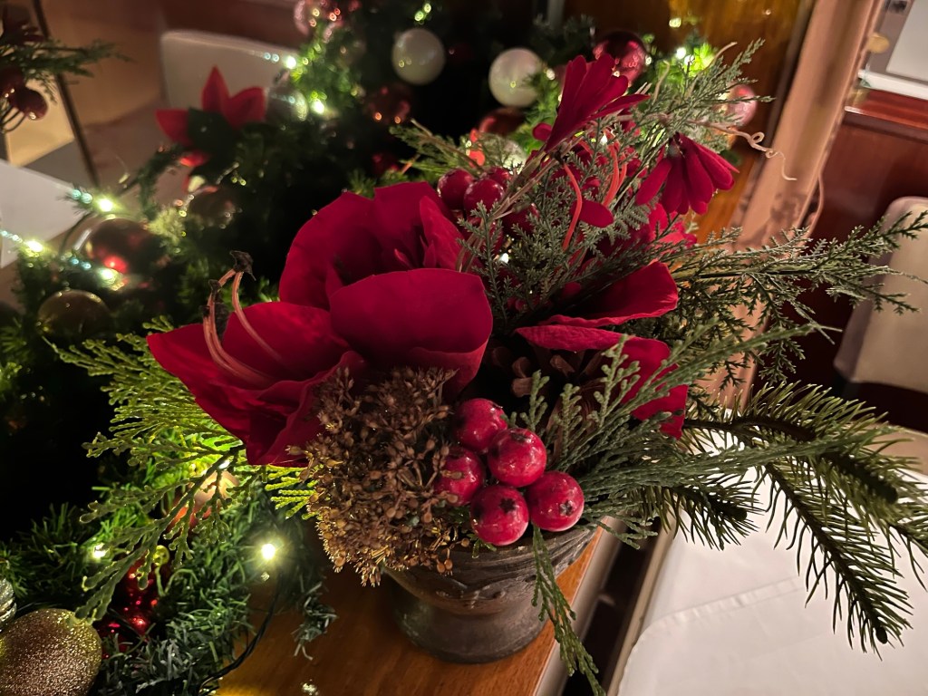 Det var Jonne som hade komponerat menyn och det hade han gjort med bravur. Först var det en ljuvlig räksoppa. Sen blev det olika sorters lax med goda såser, potatis och grönsaker. Till efterrätt var det en speciell glass som han hade spetsat med kanel och lime. Jättegott!