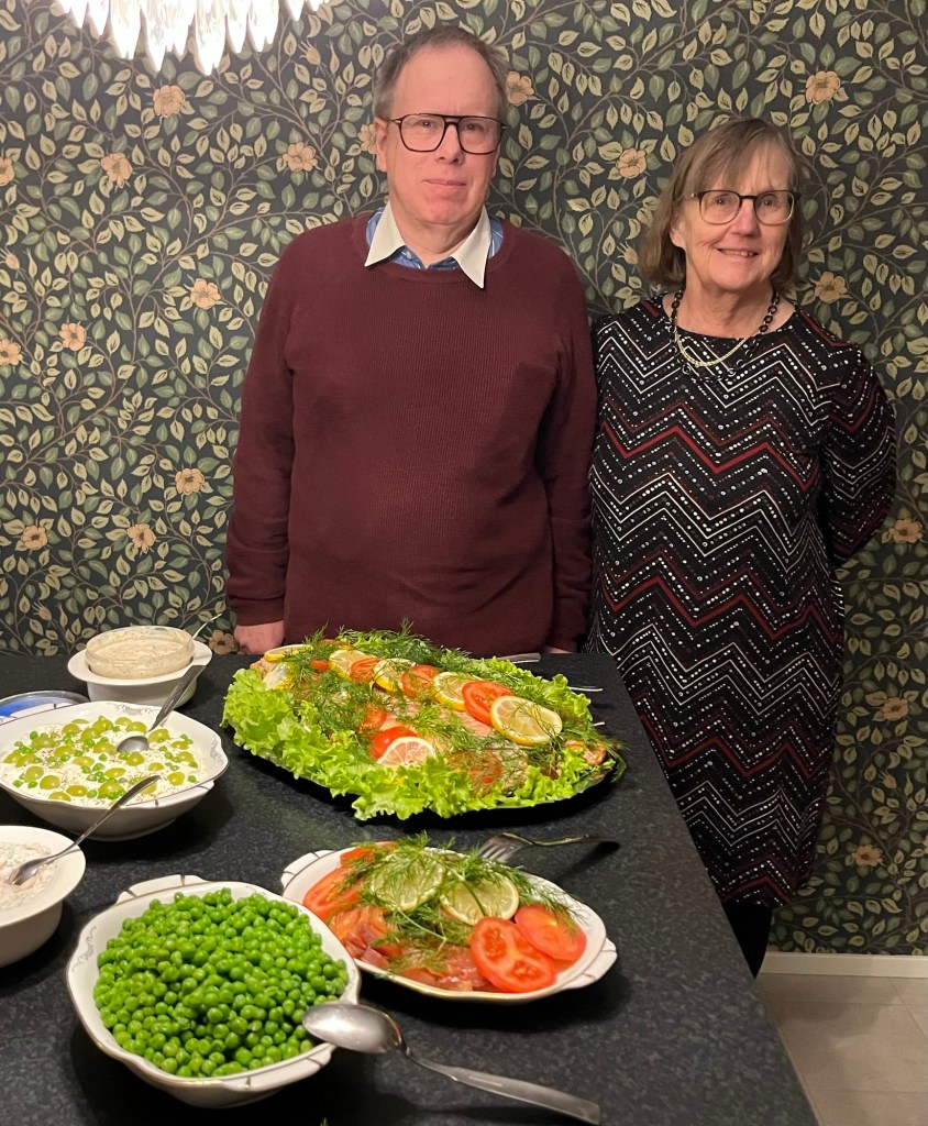 Nedan ser vi Jonne i full aktion i köket och så Willy och Monica som ska förse sig av läckerheterna.