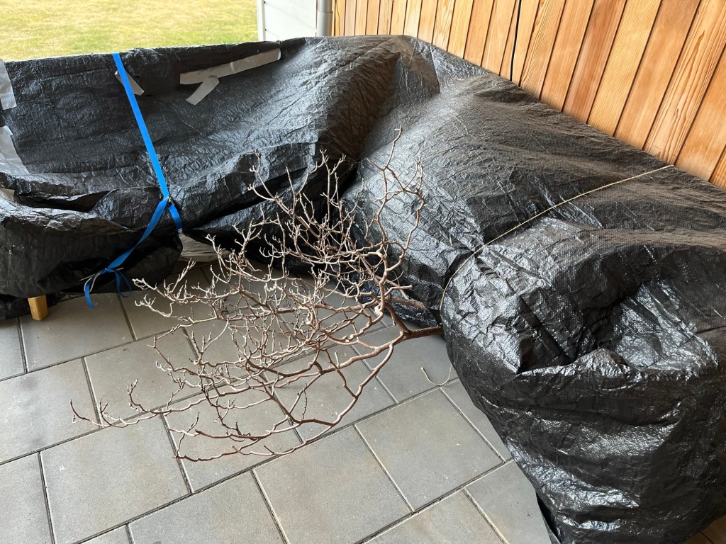 Igår tog jag bort vinterbelysningen som har lyst upp så fint utanför husknuten sen i slutet av november. Denna rhododendrongren som jag fick av goda vänner i somras har funkat så bra vid staketet. Jag har haft en belysning i den och det har verkligen varit dekorativt. Den är lika fin nu som den var när jag placerade ut den så jag sparar den till nästa jul. Den får vila lite på uteplatsen innan jag placerar den i förrådet. Det är fullt med adventsdjur och annat precis innanför förrådsdörren och det tänker jag inte ta tag i förrän det har blivit lite varmare ute. Då blir det vips mycket roligare att fixa och greja. Jag gillar inte att frysa.