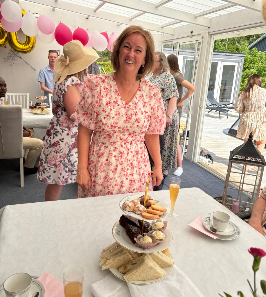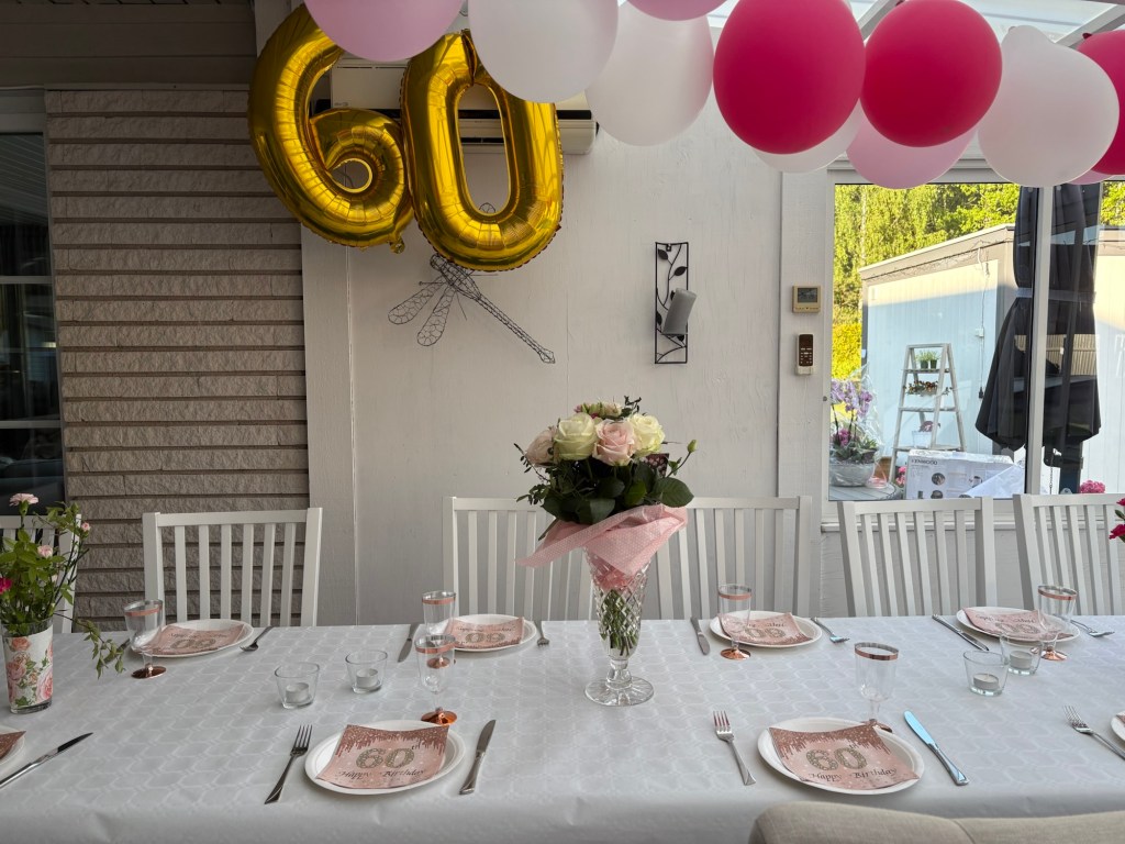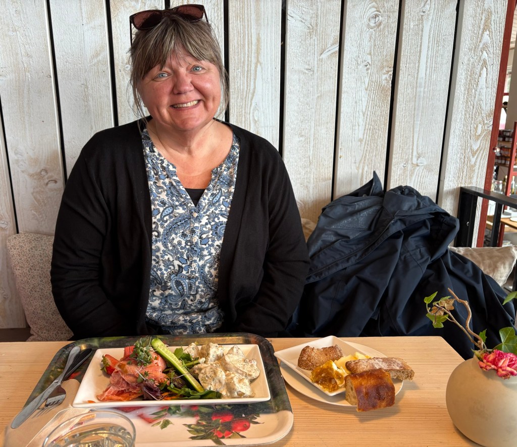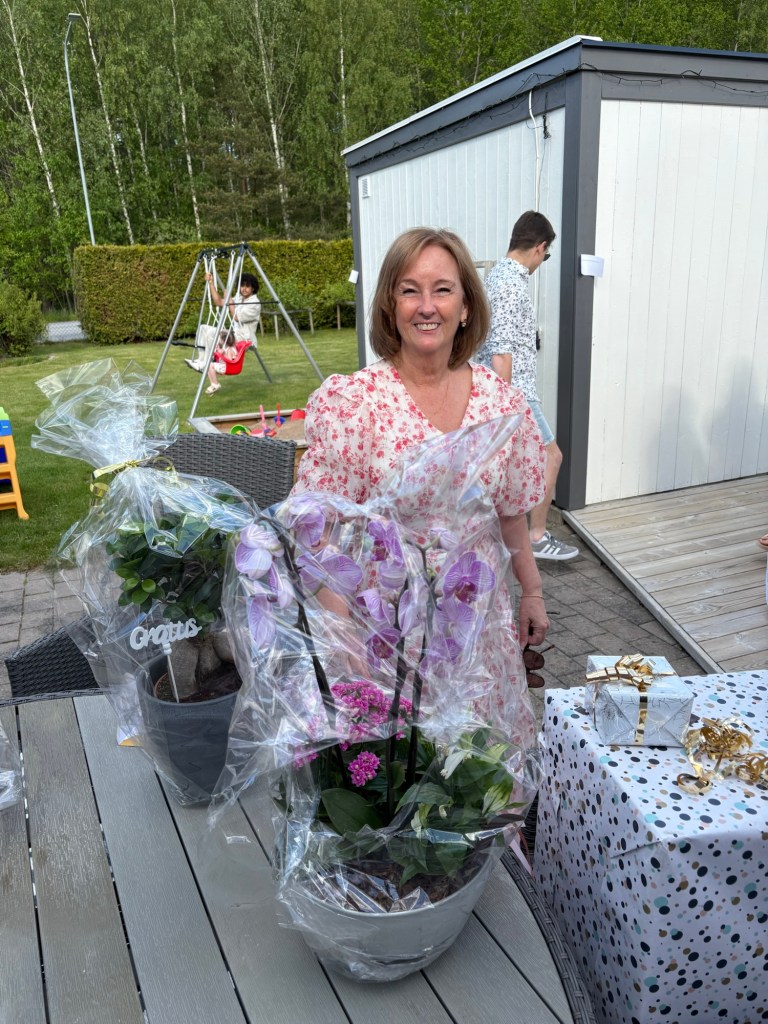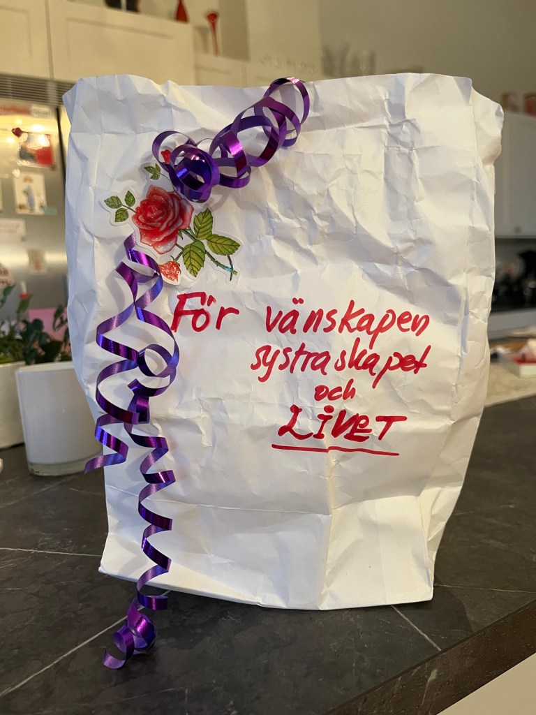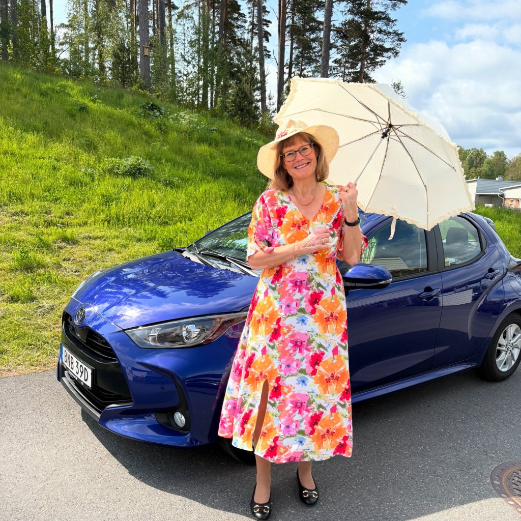 Idag styrde jag kosan till Västerås för min svägerska Anita fyller 60 år. Hon hade en önskan att alla damer skulle vara iklädda hatt och spetsparaply. Jag tyckte det blev för naket så jag tog på mig en klänning också. 😃