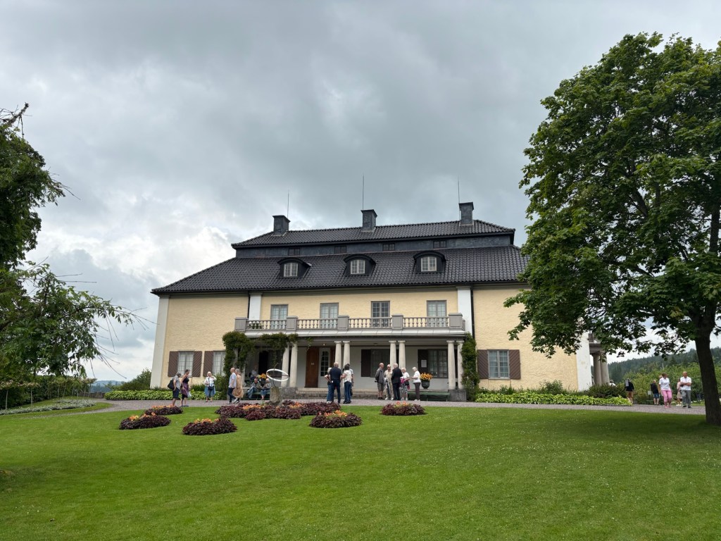 Här ser vi ett korsvirkeshus som är dekorerat med nallar året om. De byter kläder efter säsong. Just nu har de baddräkter på sig.