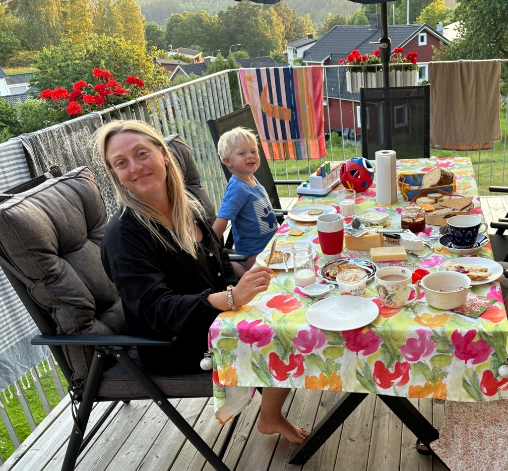 Jag har helt underbara gäster med mig på resan. Vi har det så trevligt. De är skojfriska och härliga. Här har ni oss som gillar rött. ❤️ 😃 ❤️
