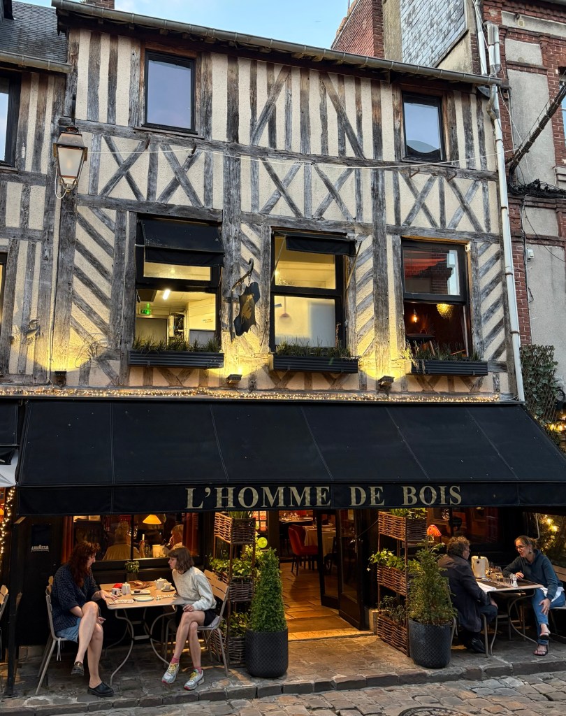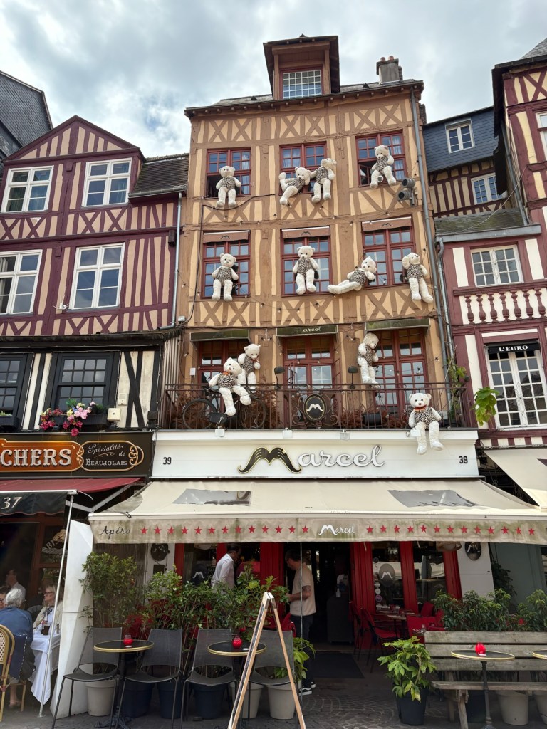 Nu har vi kommit fram till Place du Vieux-Marché. Här finns vackra korsvirkeshus.