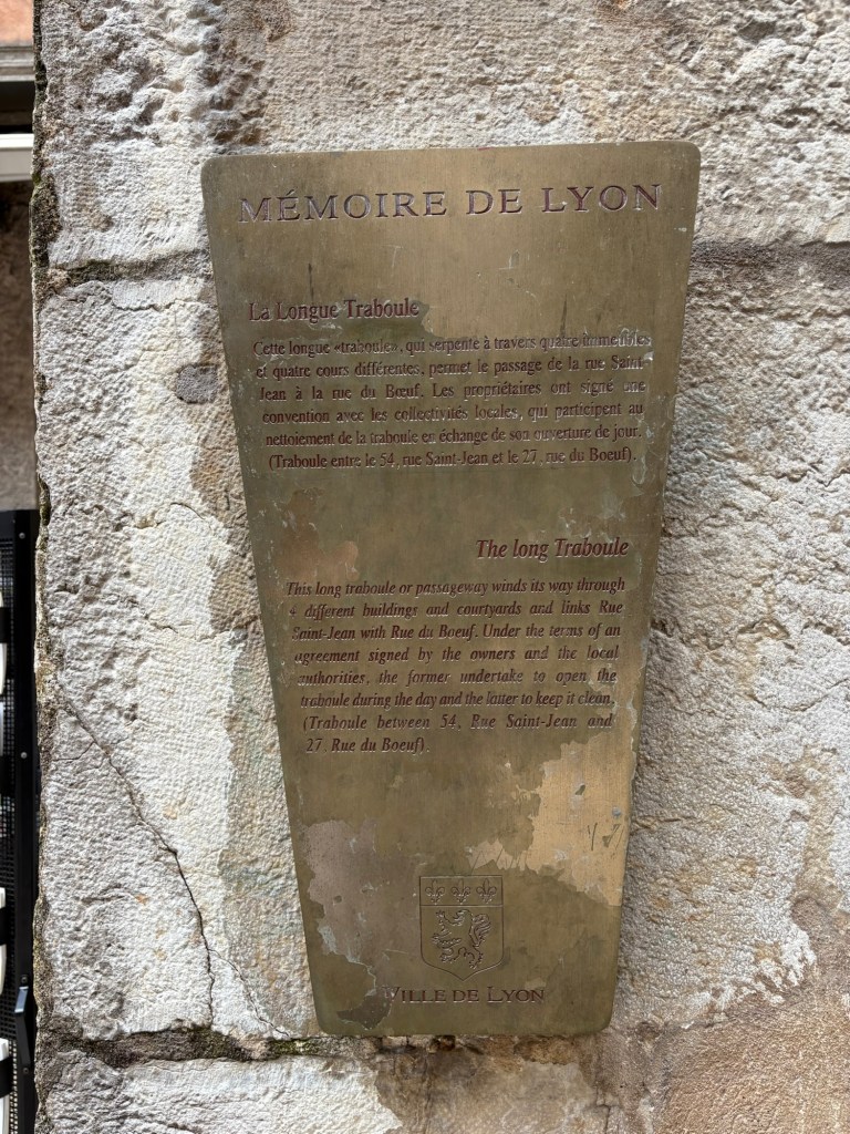 Idag checkade vi ut från MS Van Gogh och besökte vackra staden Lyon. Vi spenderade ett antal timmar i Gamla stan. Vi gick bl a i en traboule, en av de täckta passager där vävarna förr transporterade sina färdiga sidentyger. Traboulerna byggdes för att optimera utrymmet och gjorde det möjligt att snabbt transportera sidenvarorna och skydda dem från vädret.