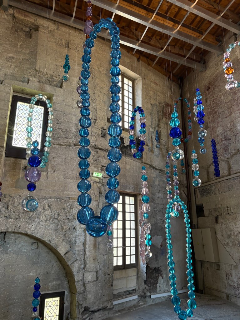Idag anlände vi till Avignon. Konstnären Jean-Michel Othoniel som bl a arbetar med glaspärlor har sin största utställning någonsin i Avignon i år. Påvepalatset är vackert utsmyckat. Så läckert när nytt blandas med gammalt!