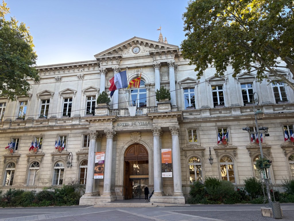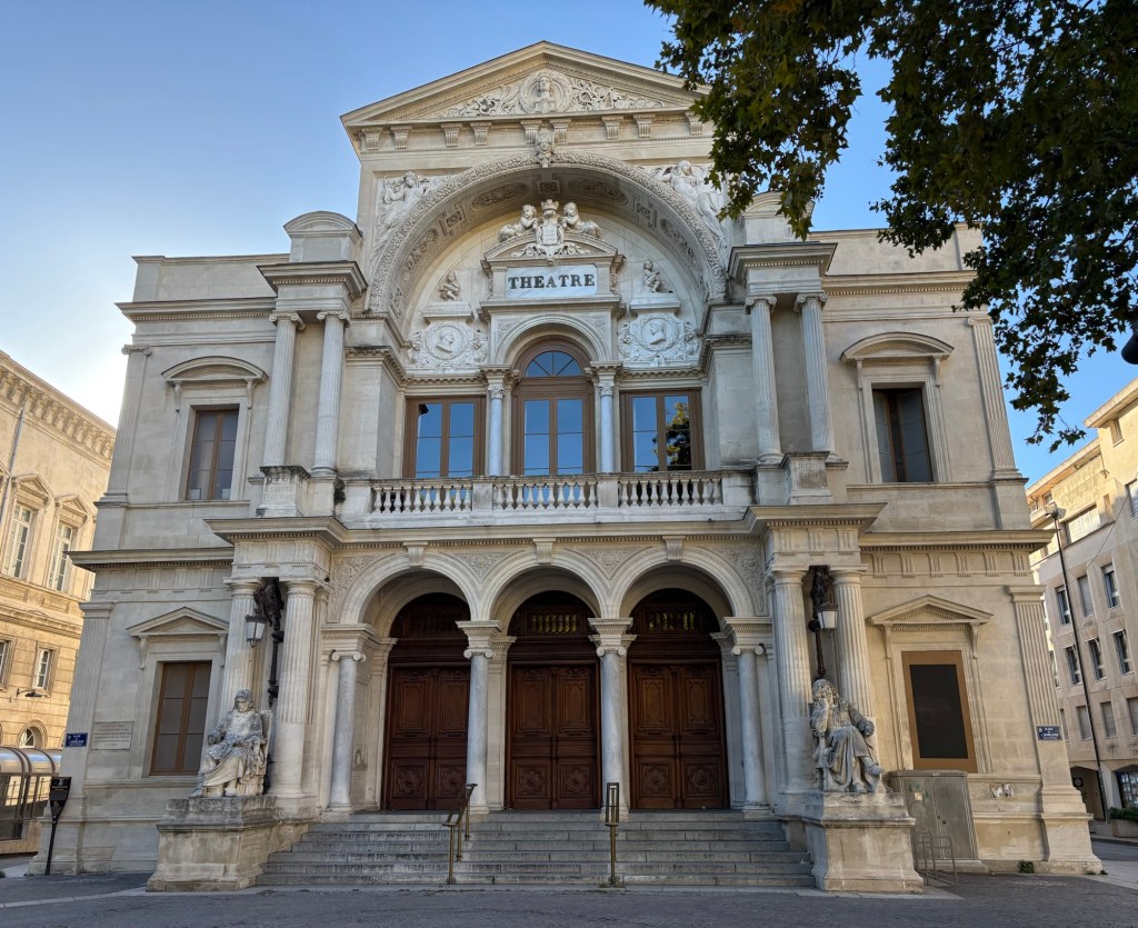 Nu är vi på Place de l’Horloge där vi hittar Hôtel de Ville (Rådhuset) och Opéra Grand Avignon. Det står Théâtre på byggnaden och här förekommer alltså inta bara opera utan även teaterföreställningar.