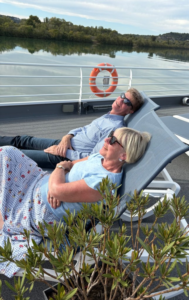 Under eftermiddagen och kvällen levde vi det härliga båtlivet. Vi lämnade Arles vid 13-tiden och anlände till Viviers vid 23-tiden. Många höll till uppe på däck. Vi njöt av livet och alla vackra vyer. Det var helt underbart att bara ligga där och vila, prata och njuta av omgivningen.