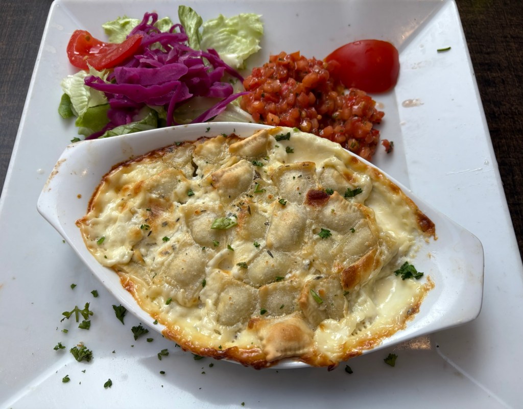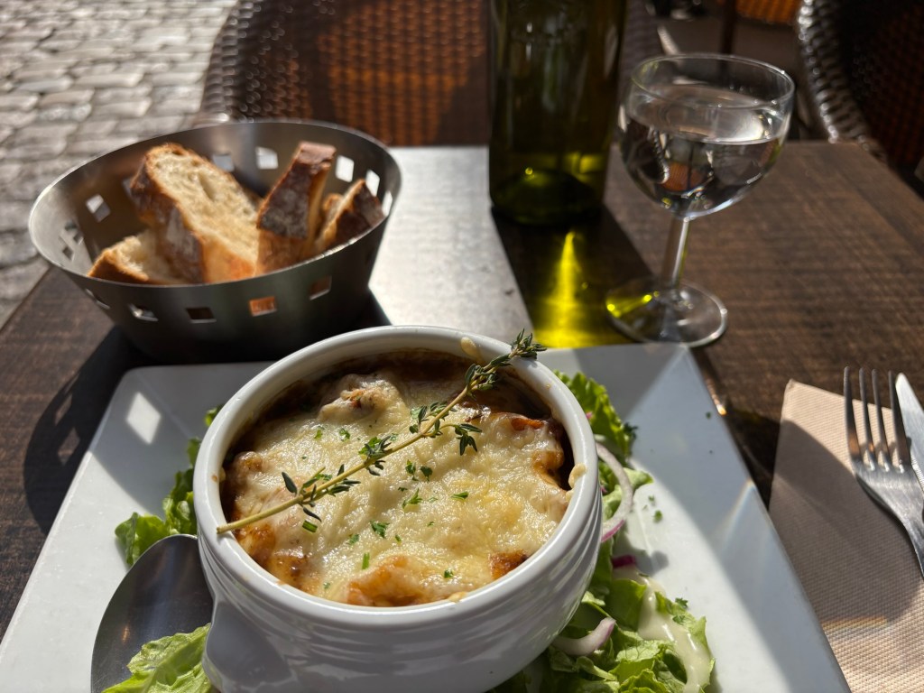 När stadspromenaden var avklarad satte jag mig i solen på en bouchon. Det är en restaurang som är typisk för Lyon. Där serverar de traditionell mat från regionen. Jag avnjöt en tvårätters lunch. Oh, vad jag njöt!