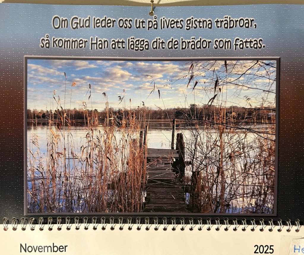 Nu har det blivit november månad och jag har vänt blad i mina almanackor. Så här ser månadsbilden ut på min almanacka Stanna till en stund av Kerstin Lindh Furås. Texten lyder: