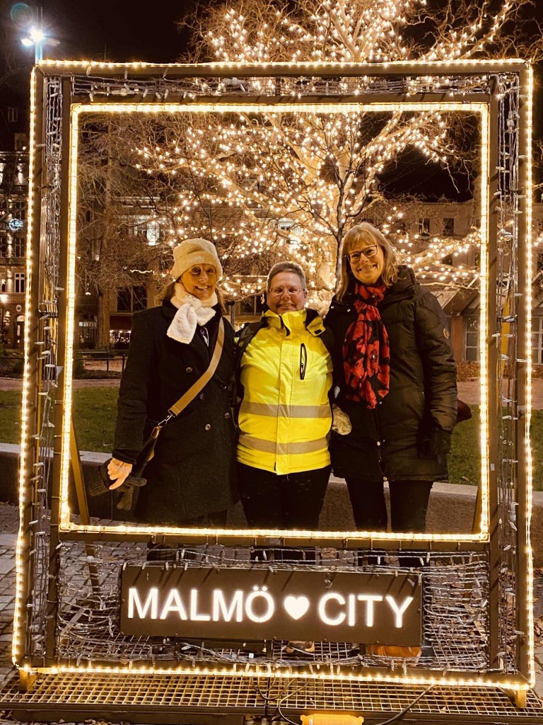 Jag har den stora förmånen och glädjen att få ta med en anhörig på årets Julresa så jag bjöd med min syster Therese. Vi har samme far, Gud i himlen! 🙏😃 Nu blir det livat i Tyskland. 🤩🇩🇪 Vi lämnade ett disigt Jönköping och är nu i ett julsmyckat Malmö där vi haft en härlig kväll med vår gemensamma vän Millis och patrullerande poliser. Så tryggt! 🤗