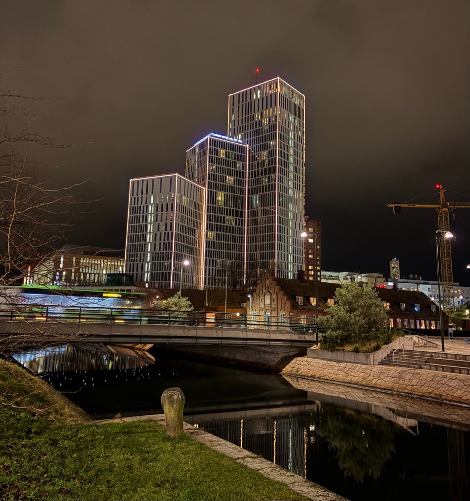 Ett julsmyckat Malmö by night