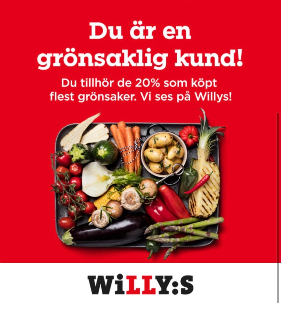 Jag fick ett mail från Willys som redogjorde för vad jag köper mest hos dem. Detta var trevligt att se. 😃 Jag verkar ju riktigt sund.