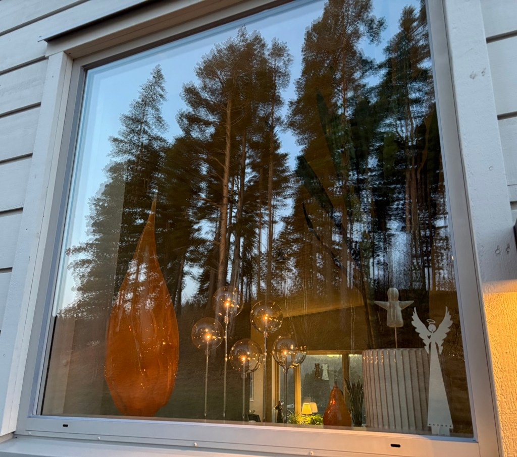 I lördags när mina goda vänner från Nybro var här fick jag en ängel. De vet att jag gillar änglar. Jag har inte riktigt bestämt var jag ska placera den men jag tyckte den sa att den ville stå i fönstret ut mot gatan för att se vilka som passerar så jag ställde den där. Då kan den också ha lite koll på vilka som knackar på dörren och beskydda mig lite extra.