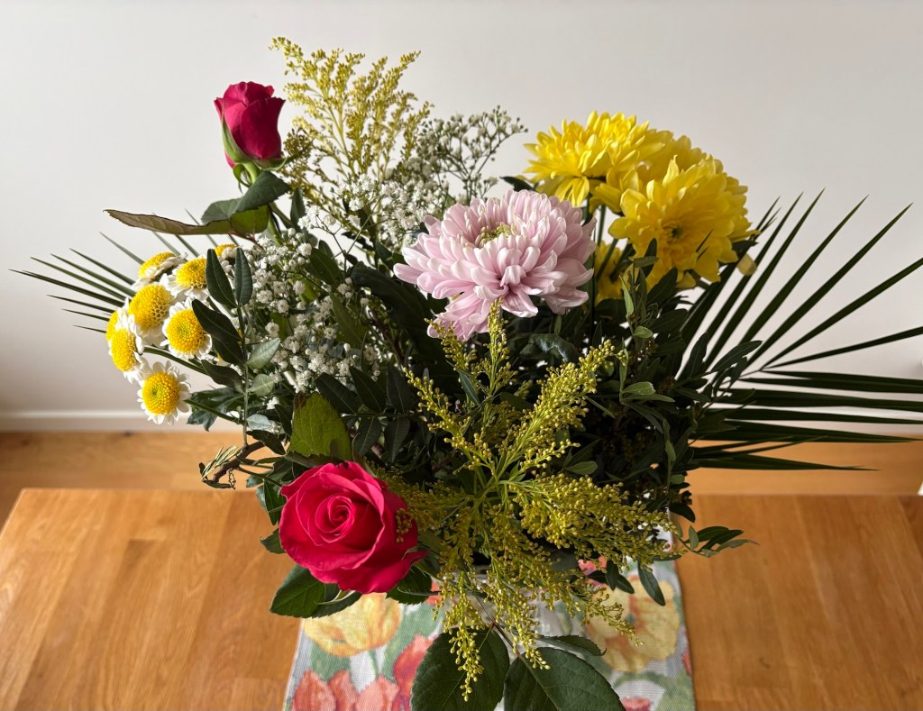 När jag kom till affären ikväll för att handla mat fanns det helt underbara blombuketter till pangpris så jag slog till och köpte denna vackra bukett. Den kommer att sprida ljus och glädje i påsk