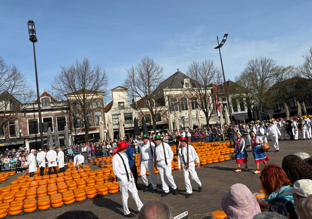 På morgonen åkte vi till Alkmaar för att vara med på det trevliga skådespelet som visar hur osthandeln gick till förr i tiden. Det sker på torget Waagplein.
