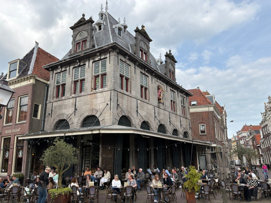 Här ser vi det vackra 1600-talshuset Waag. Det var tidigare ett våghus där osten vägdes vid osthandeln. Även här, precis som i Alkmaar, förekom handel med ost på torget. Idag fungerar detta hus som ett café och restaurang. Dess namn är D’Oude Waegh och ligger vid stadens hjärta, torget Roode Steen.