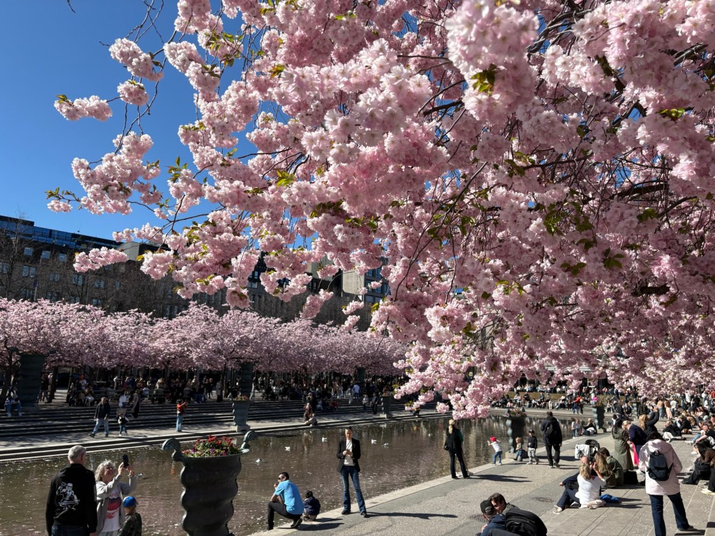 Sen gick vi vidare till Kungsträdgården där körsbärsträden står i full blom. 💗💗💗 Jag har längtat efter att få komma hit just denna tid. Vi njöt i det vackra vädret.