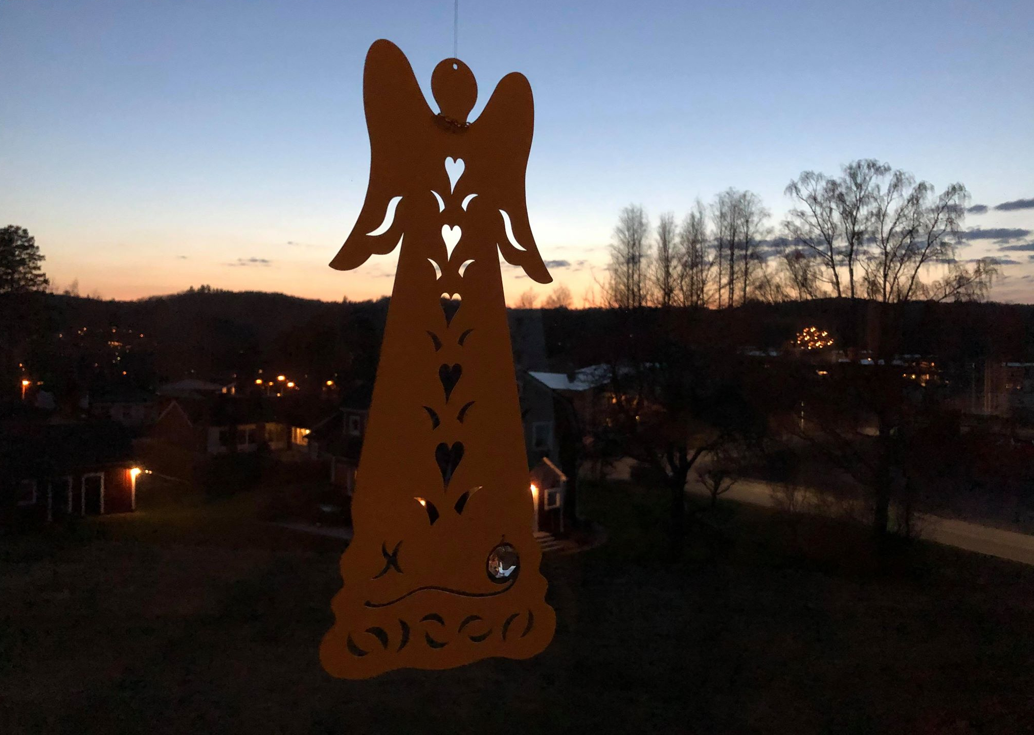 Jag gillar änglar och det kan man nog förstå när man är hos mig. Jag har änglar lite överallt i huset. Denna söta ängel fick jag av min goda vän Helena när hon var här på adventsfest. Jag blir glad när jag ser den. Strax bakom hänger en tavla som är skapad av samma konstnär. Hon heter Anette Svensson och bor i Jönköping.
