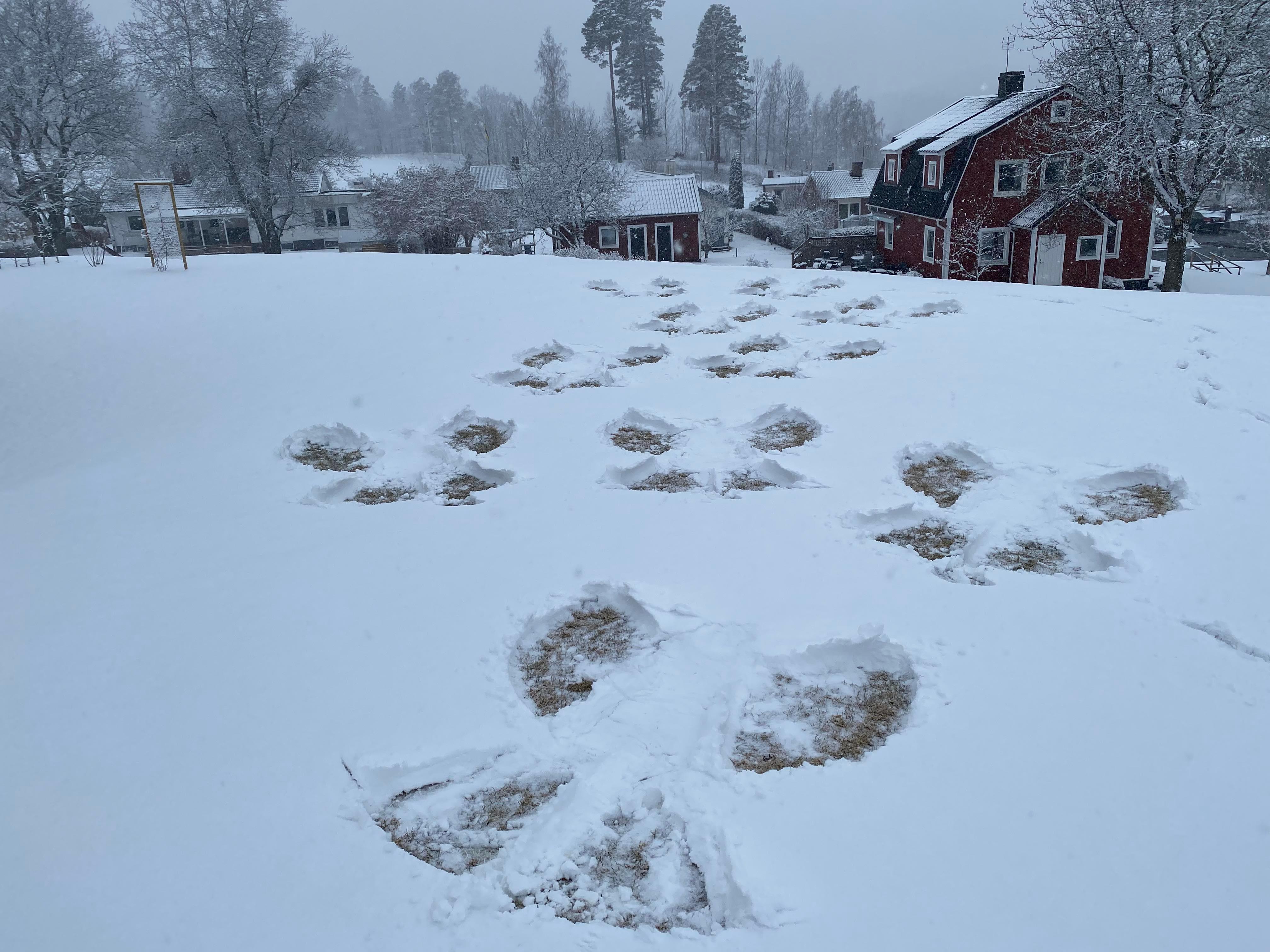 Det är vackert med snötäcket, speciellt när solen skiner. Framåt eftermiddagen blev vägen plogad också. Det gäller att varje dag kunna njuta av det väder som serveras från himlen. Det är bättre än att gnälla.