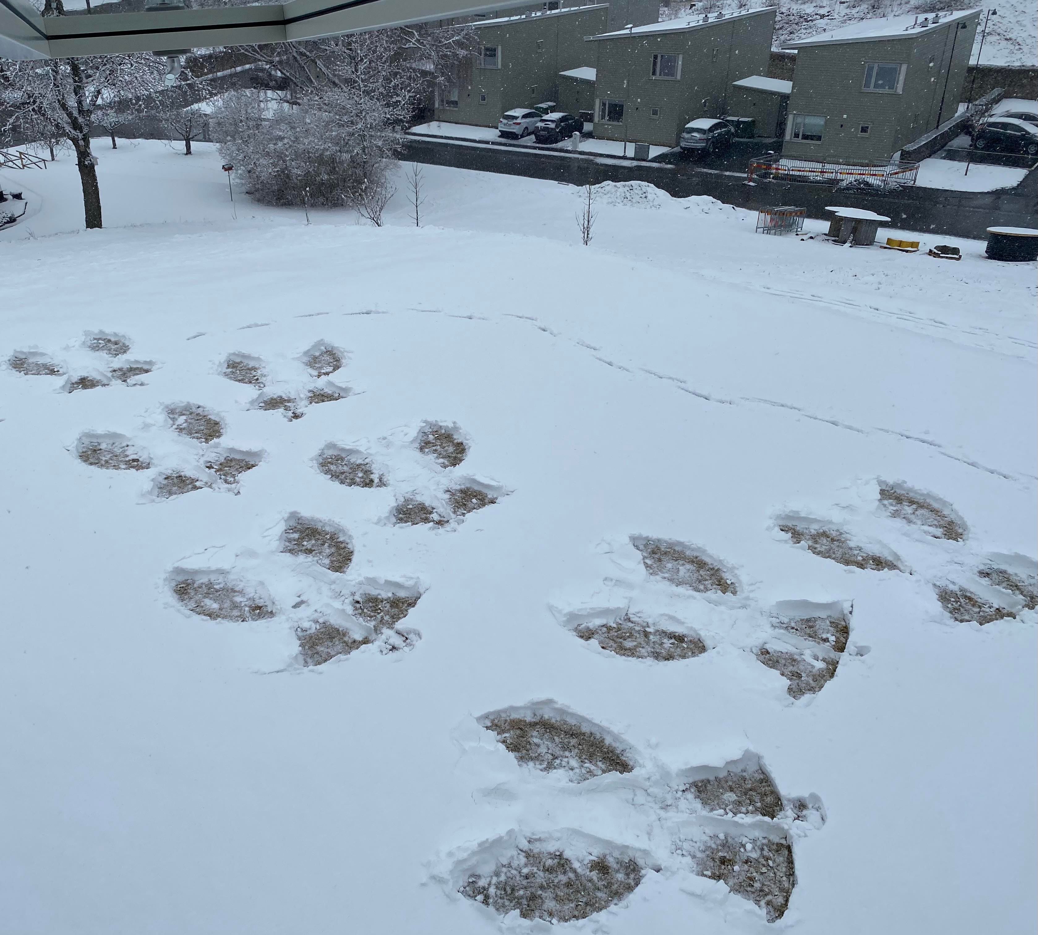 Efter nattens snöande såg det ut så här idag på morgonen. Det är verkligen aprilväder. Jag gick ut och skottade på lunchen. Solen sken och hjälpte till genom att smälta en del snö.
