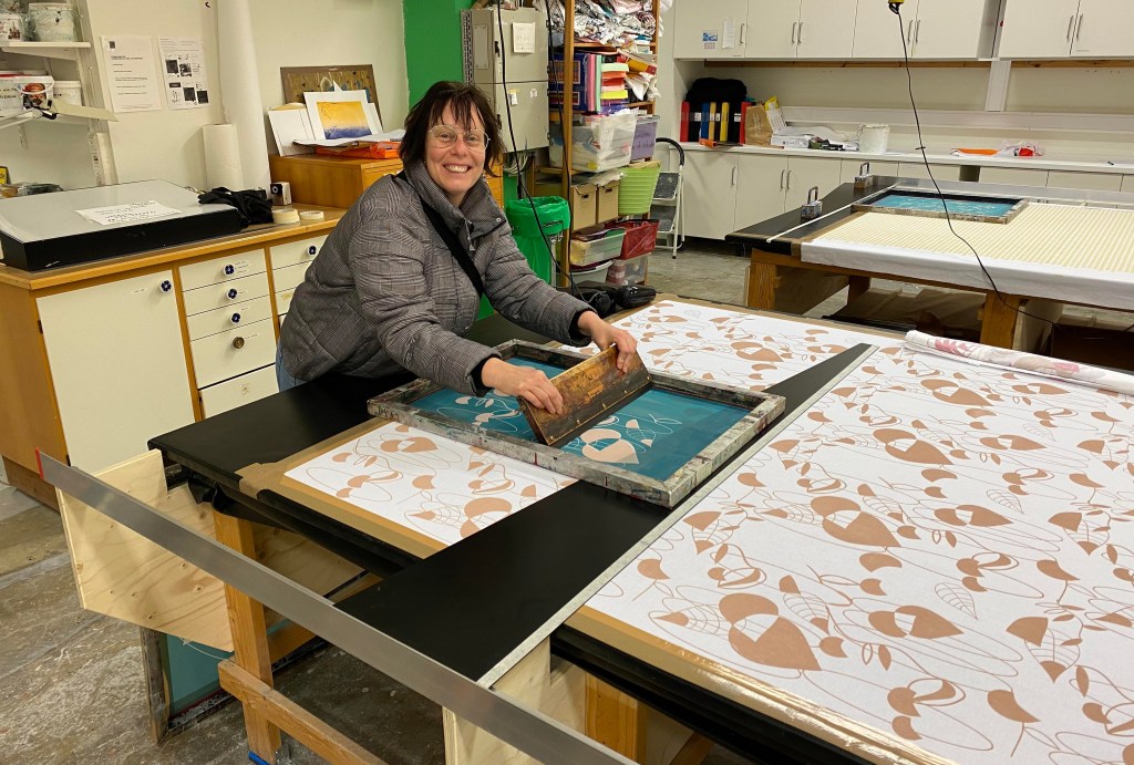 Vi besökte Bodils skola. Det var jättekul att få se vad hon och de andra gör. Jag lärde mig en del nya ord. 🙂 Här raklar hon sin första mönsterrapport. Hon är kreativ och gör egna mönster. Det ska verkligen bli spännande att se vart detta leder. Jag tror vi kommer att få se hennes mönster både på tapeter och annat framöver. Det är roligt med skapande verksamhet.