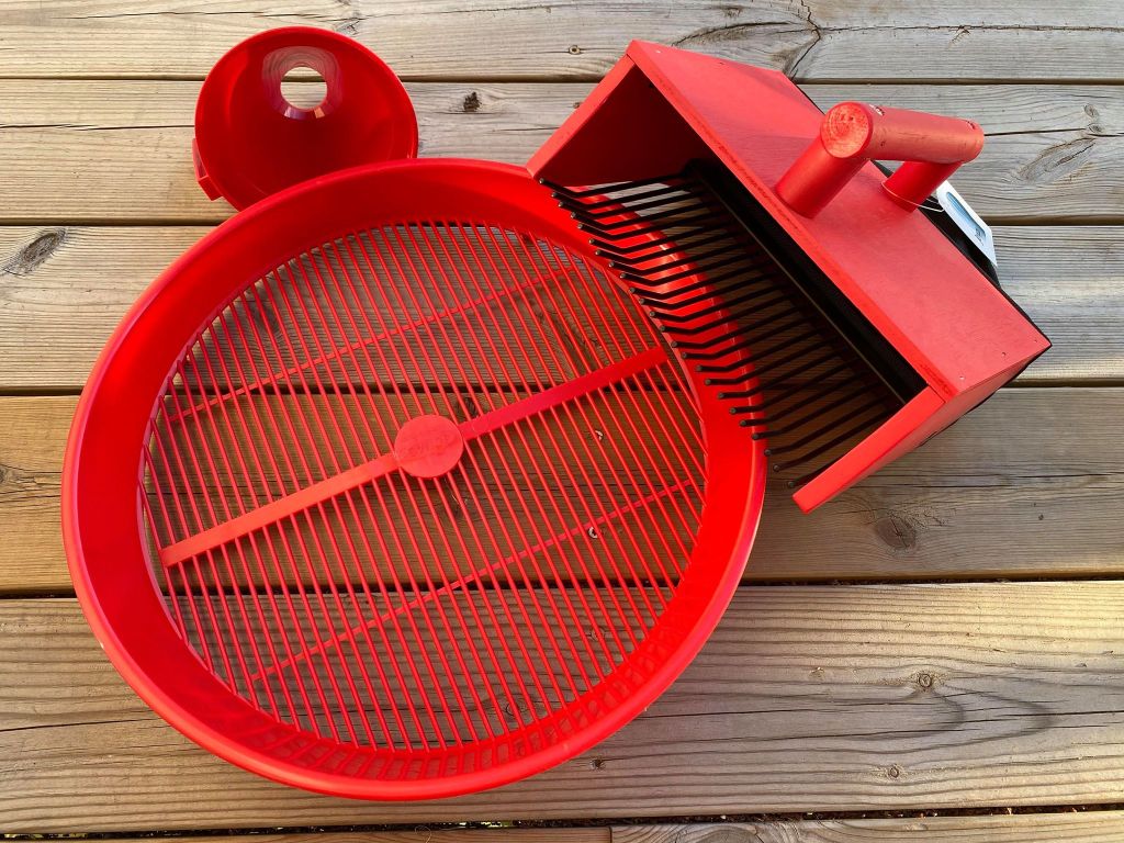 Jag har plockat blåbär vid några tillfällen den senaste tiden och har då plockat för hand. Visst är det mysigt att sitta där och plocka bären ett i taget men det går väldigt långsamt. I måndags plockade jag 3,6 liter på drygt 3 timmer och så åt jag en massa förstås. Jag vill ha mer bär nu när det finns så mycket av dem i skogen. Igår åkte jag helt enkelt iväg och köpte mig en bärrepa och ett galler till att rensa blåbären med.
