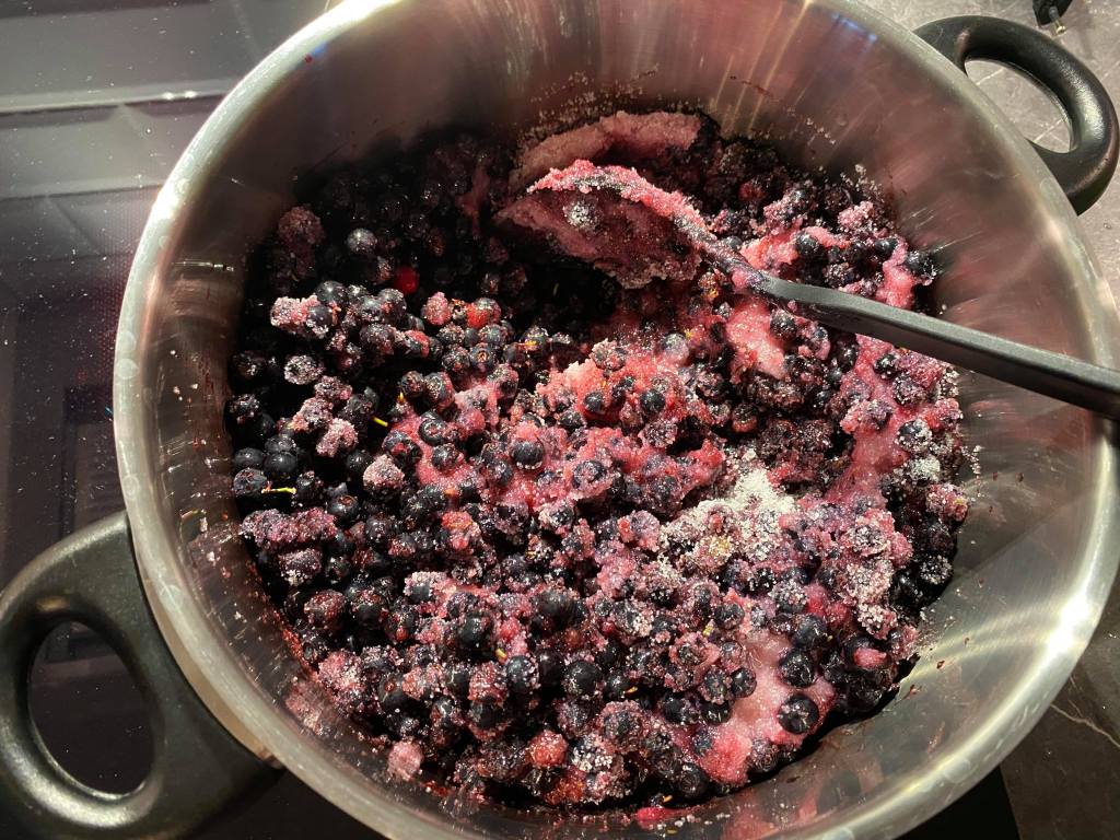 Idag har jag varit ute i skogen och plockat mer blåbär. Det börjar bli fullt i frysarna så jag gjorde ganska mycket marmelad. Blåbärsmarmelad är mumsigt och så enkelt att göra. Idag följde jag ett recept jag hittade på nätet. Jag gjorde fyra satser och använde följande ingredienser: