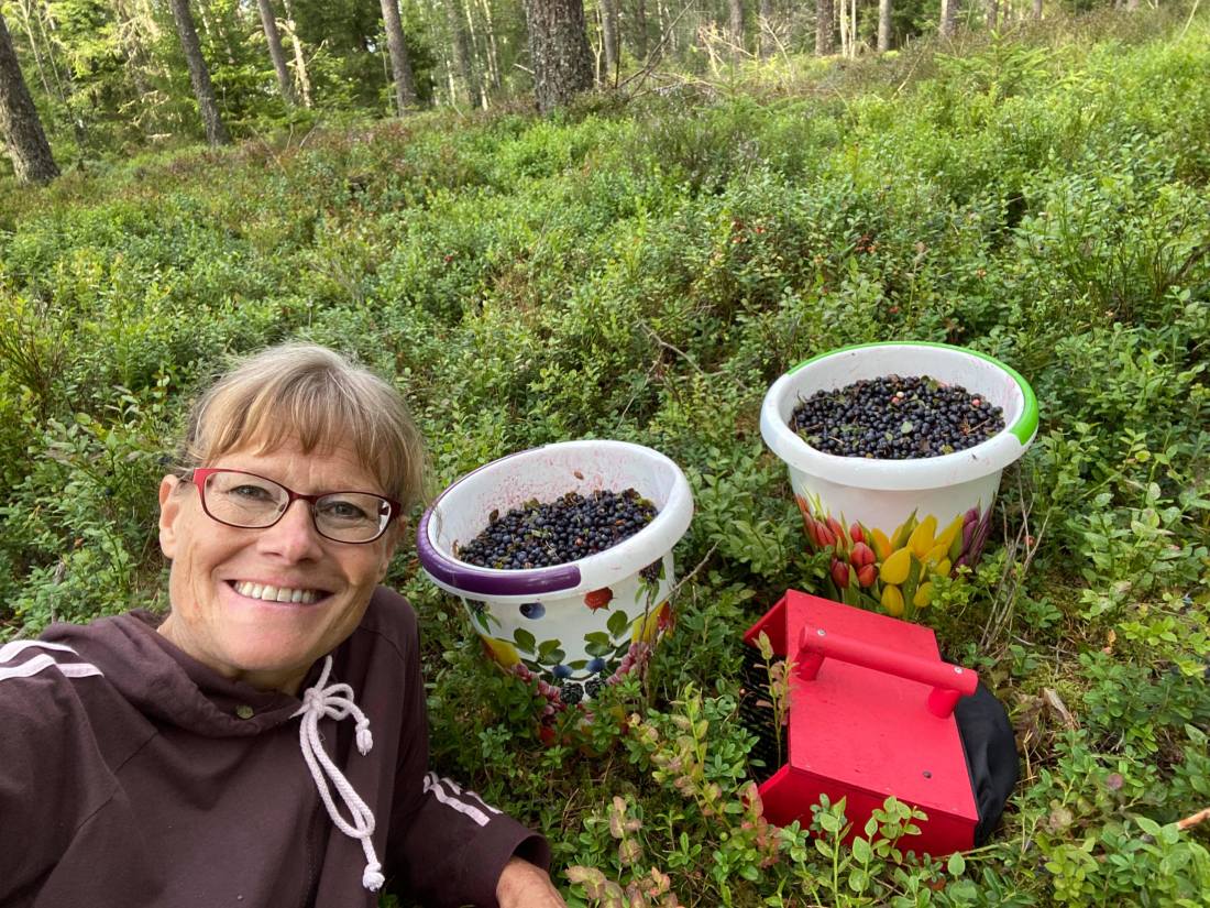 För tre år sen var det ett riktigt bra blåbärsår och det var då min passion för blåbär började. Det gick så fort att plocka. bären Jag tror att jag hann plocka 10 liter på en timma och jag var ute i skogen jättemycket. Ofta hade jag 20 liter med mig hem. Det var så roligt. Jag köpte en ny frysbox för att jag skulle kunna härbärgera dessa superbär.
