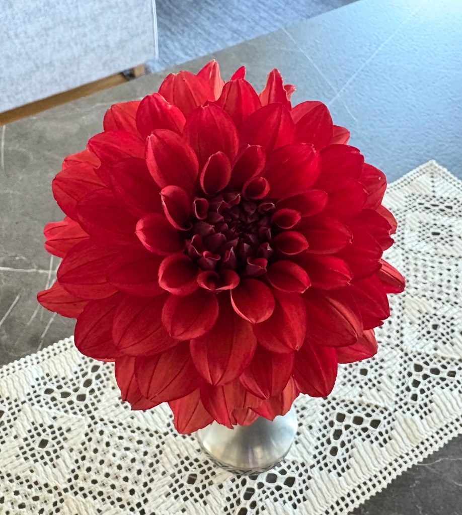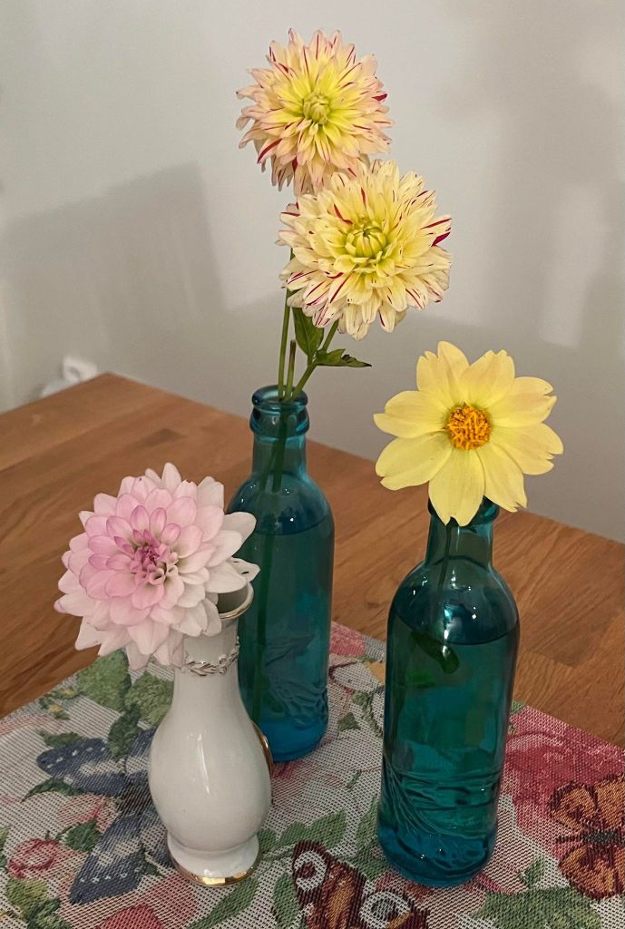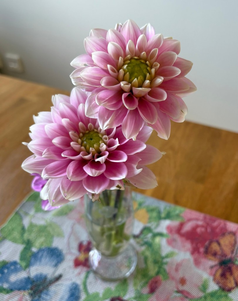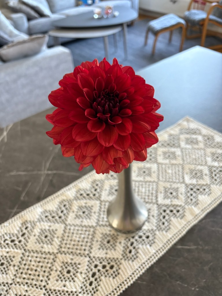 Nu är det dahliatider, härliga tider alltså. Varje morgon går jag ut och tittar till mina kära blomster. Jag tycker dahlior är dekorativa. Det räcker att ha en eller två blommor i en vas. Nu njuter jag för fullt. Jag blomsterboostar varje dag. Visst är det underbart!?