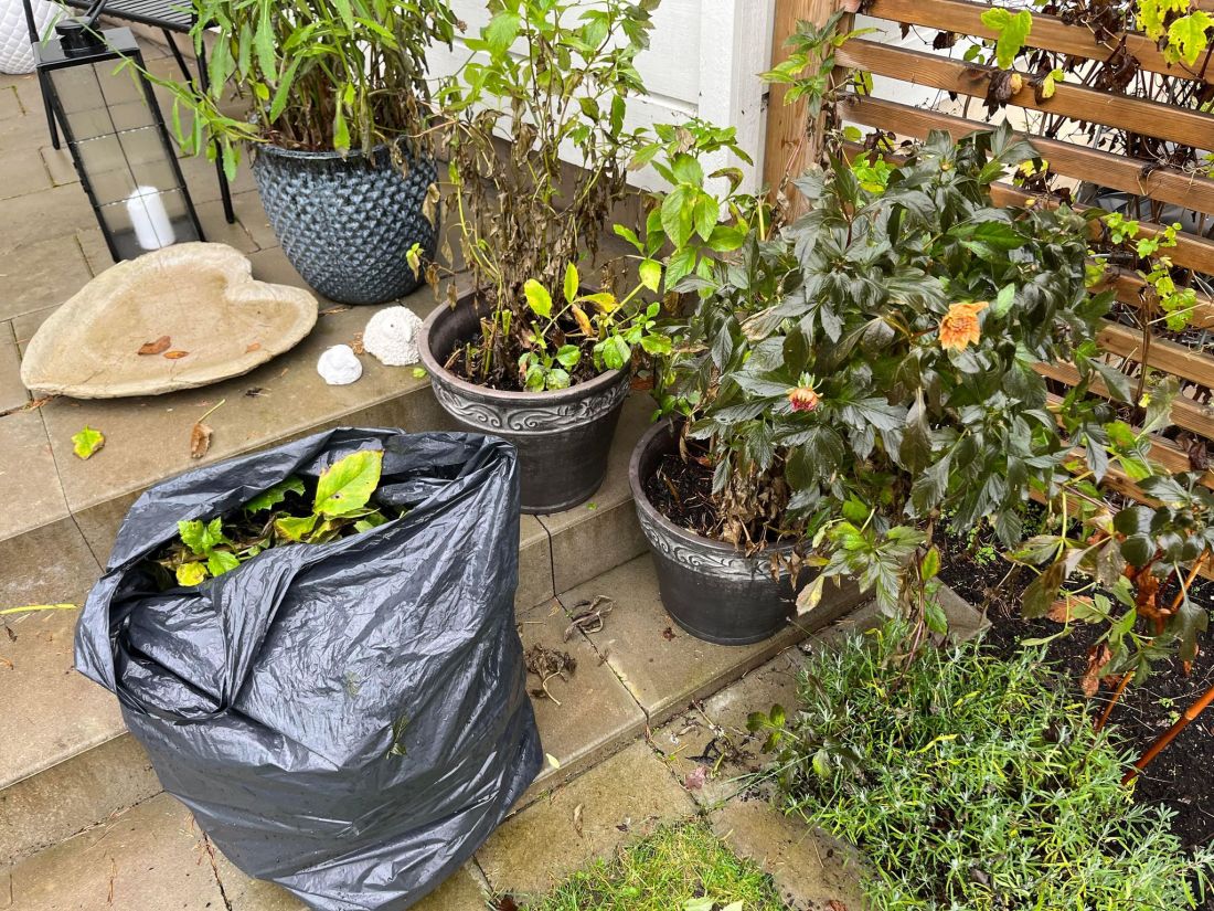 Lite vemodigt känns det allt när dahliorna har utsatts för frost och blivit hängiga. Det hände i veckan så idag har jag gjort trädgården i ordning för vintern. Jag har klippt ner dahliorna och tagit in lökarna i förrådet. De andra blommorna är också nedklippta och jorden är uthälld i mitt något provisoriska blomland.