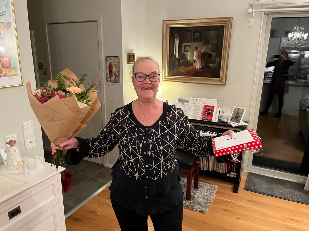Buketten till vänster fick jag av vännerna Monica och Willy och buketten till höger av vännen Helena.