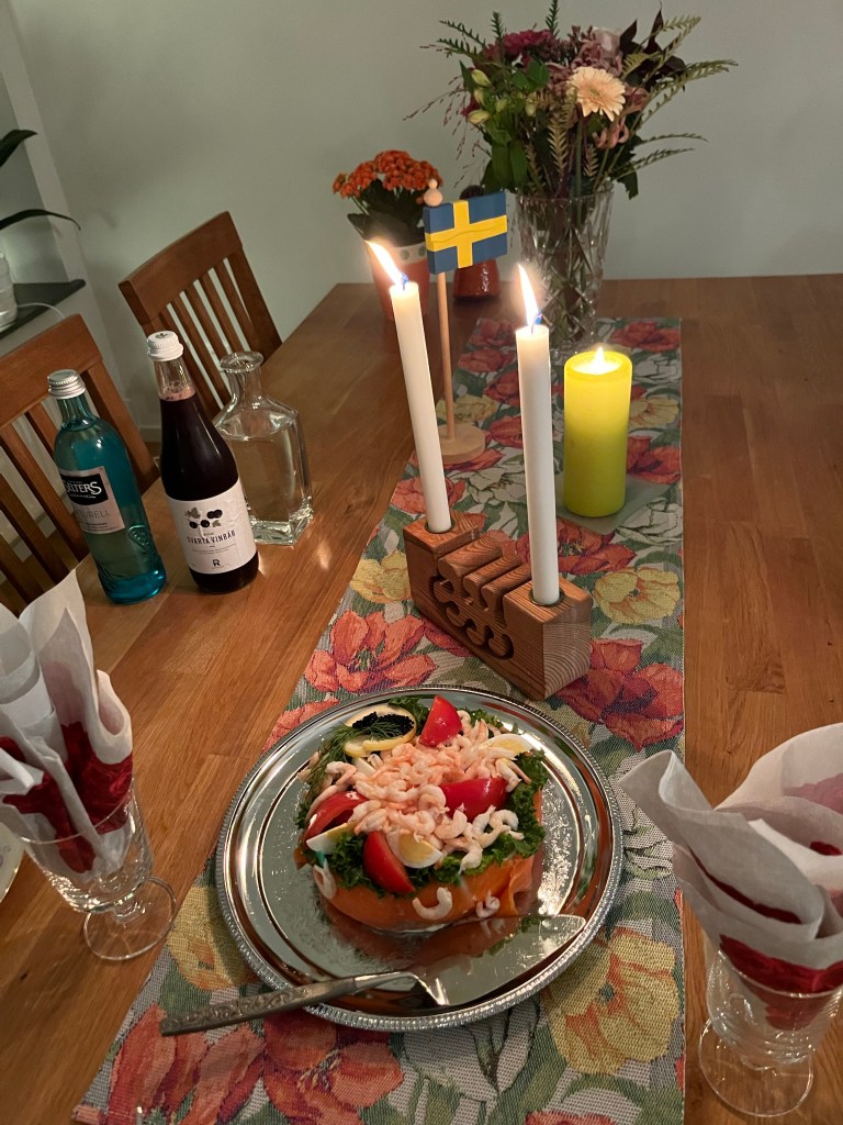 Jag gjorde det lätt för mig och köpte en liten smörgåstårta idag. Vi mumsade på den och åt lite sallad.