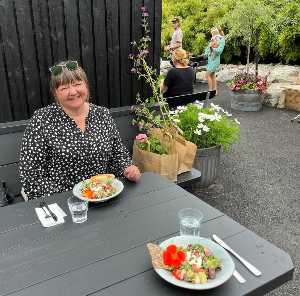 Vi åt en utsökt lunch i deras trevliga trädgårdscafé. Oh, vad vi njöt!
