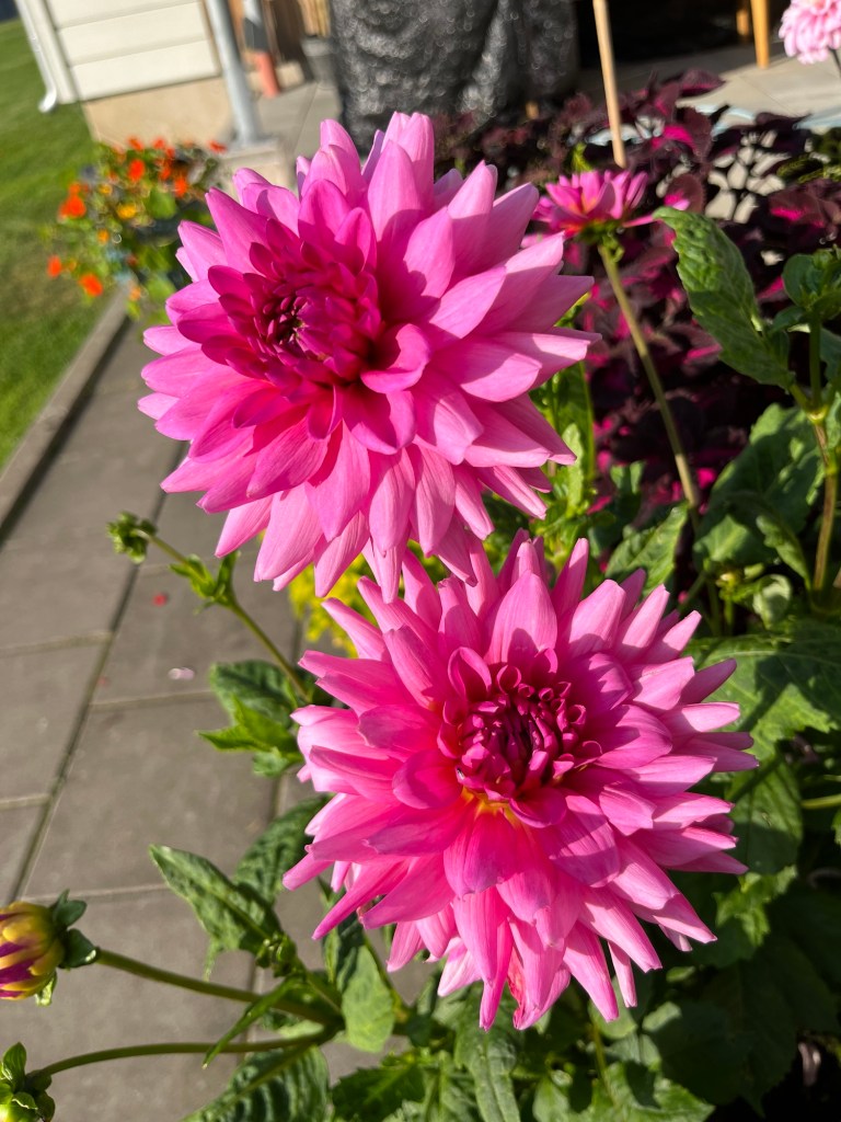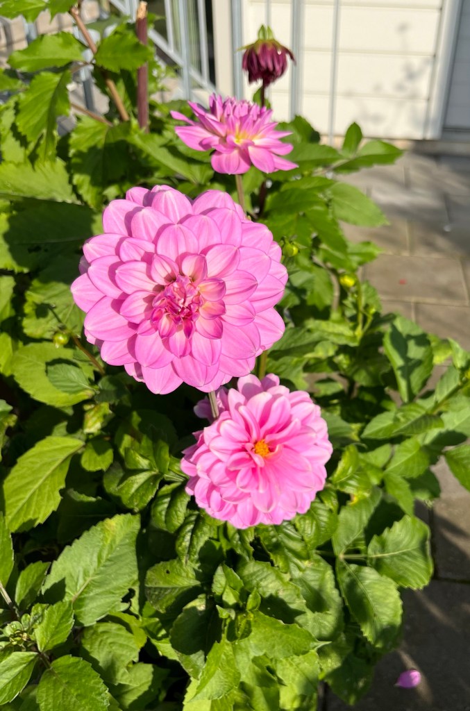 Palettbladen som jag planterade ut i början av sommaren växer och frodas. De är otroligt dekorativa. Mina olika dahlior blommar för fullt. Det kommer nya blommor hela tiden.