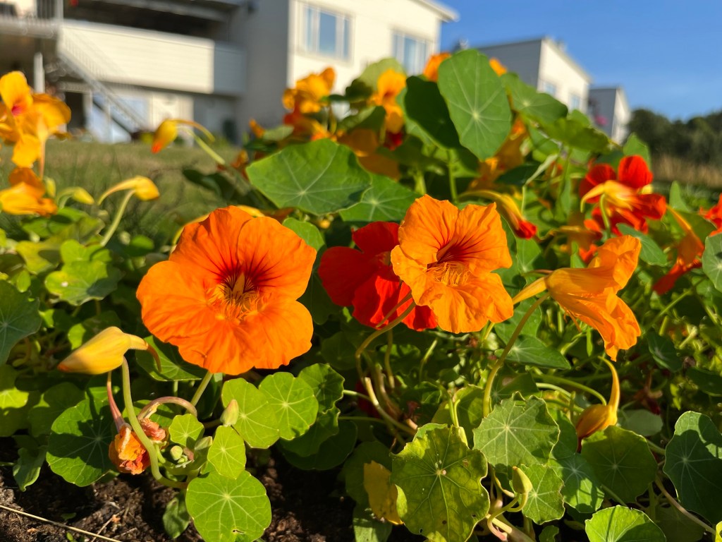Det är första gången jag odlar krasse och nu börjar den blomma. Jag sådde fröna direkt utomhus i krukor och sen planterade jag om plantorna i två större krukor. Nu börjar de blomma och jag är så glad. Jag tycker de är ljuvliga.