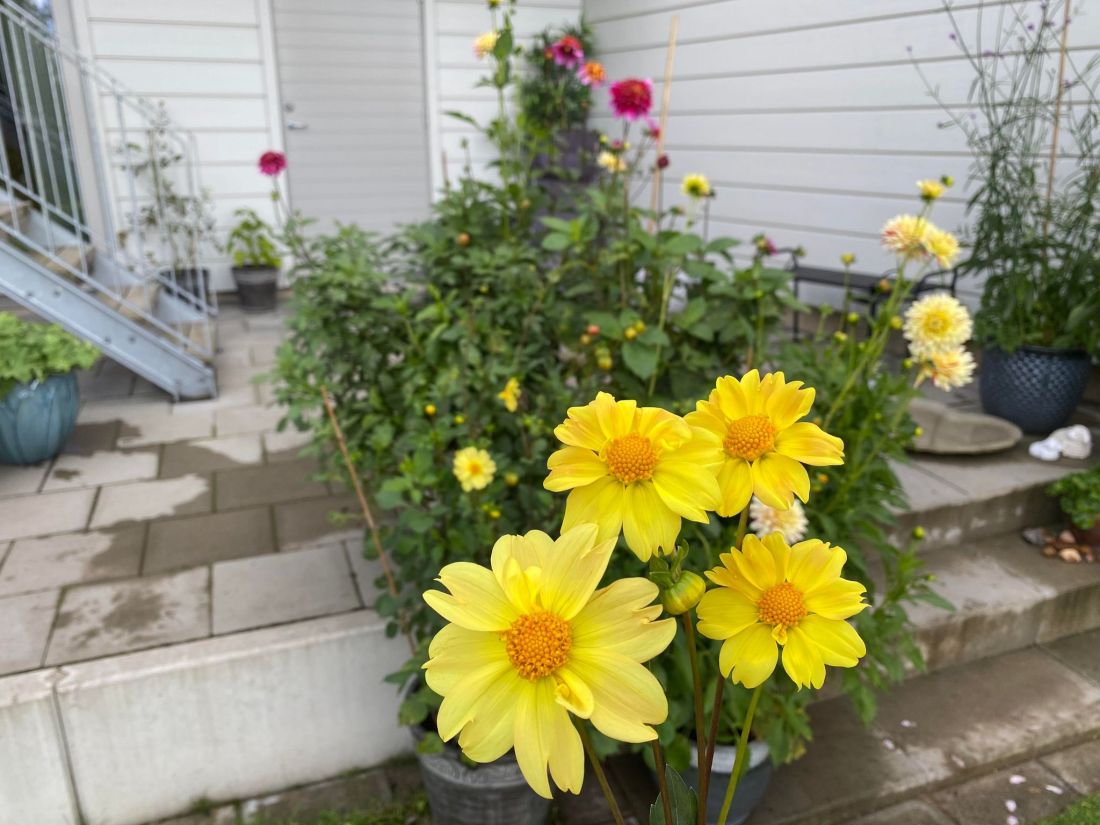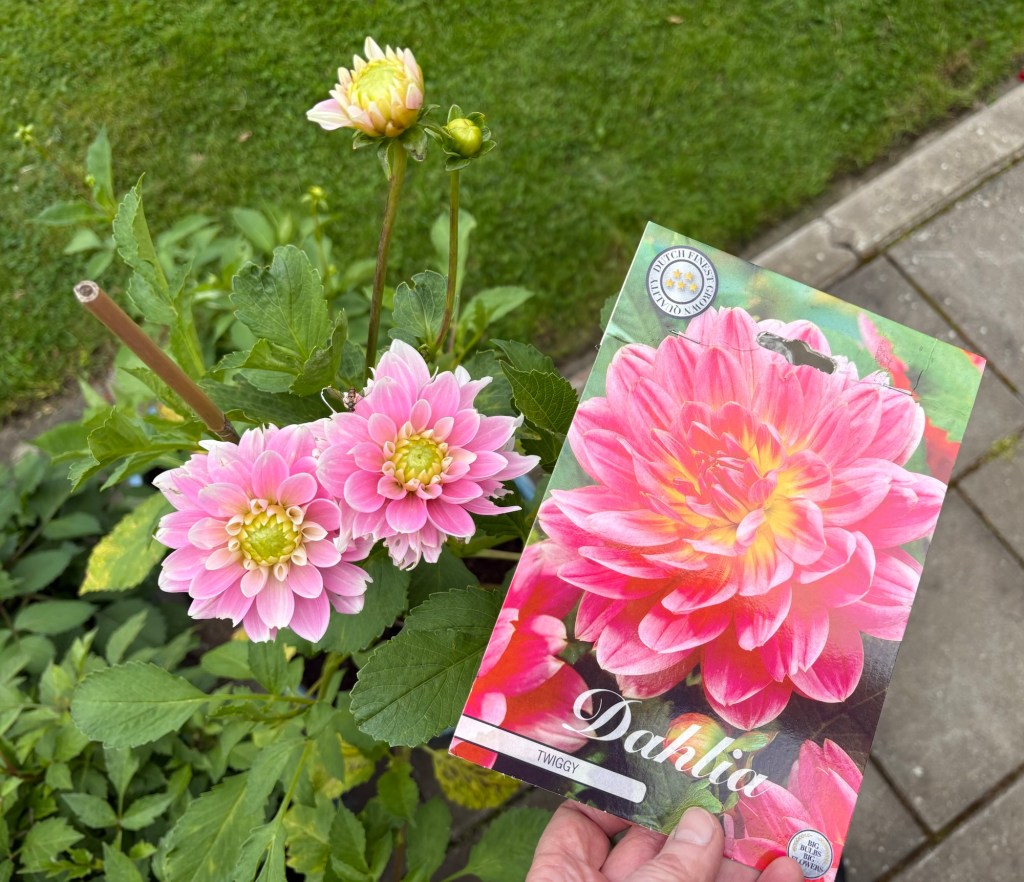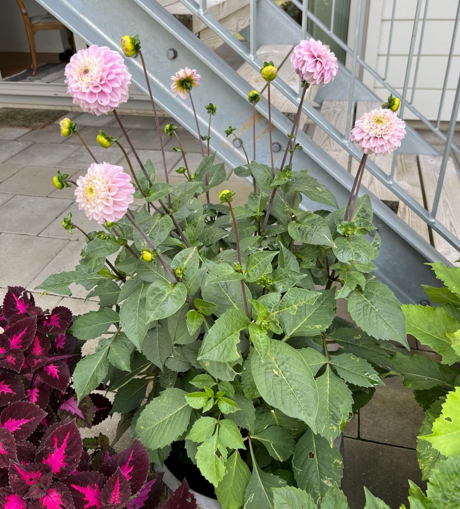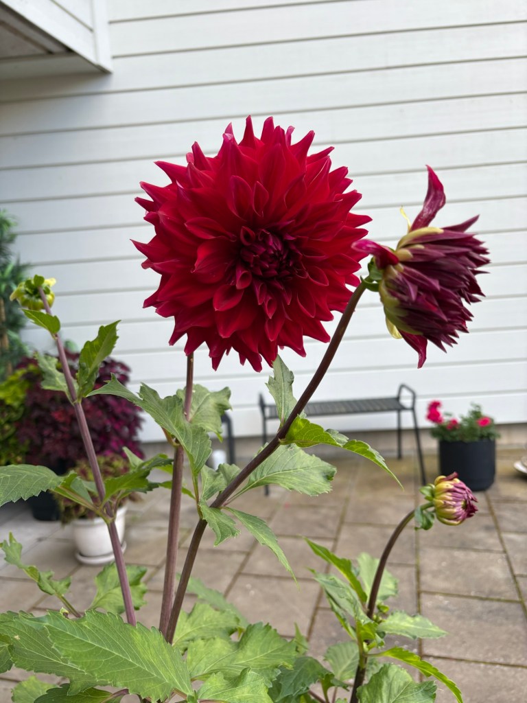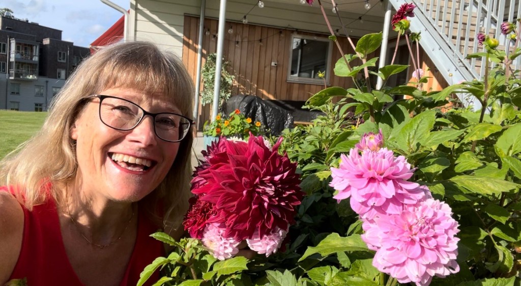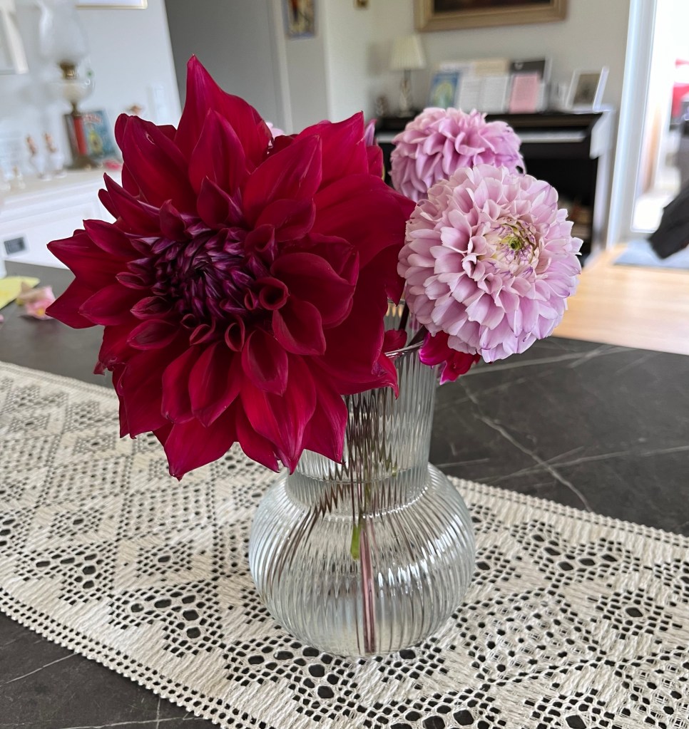 Jag älskar mina dahlior så idag blir det en dahliaboost. Den vänstra dahlian var en av de första jag köpte för några år sen och jag tycker den är läcker. Förra året blev det inte några sådana blommor och jag vet varför. När jag skulle packa in mina dahlior efter första frosten förra hösten upptäckte jag att jag hade glömt att plantera några lökar och det måste ha varit just dessa. Jag petade ner dem i jorden i våras och nu blommar de för fullt. Vilken lycka!