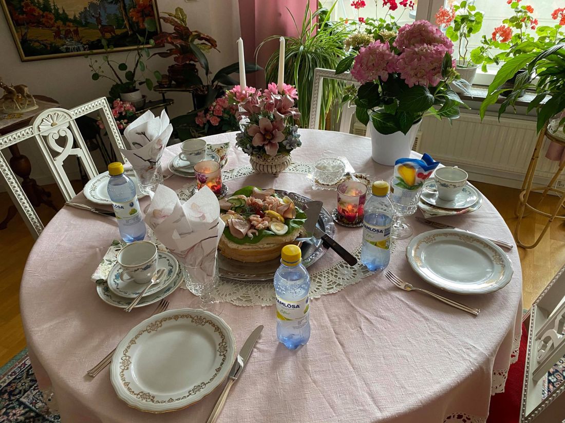 Idag var mamma och jag bjudna till vår goda vän Rut som fyller 89 år idag. Hon hade dukat så fint. Det är en fröjd att få sätta sig till ett så vackert dukat bord.