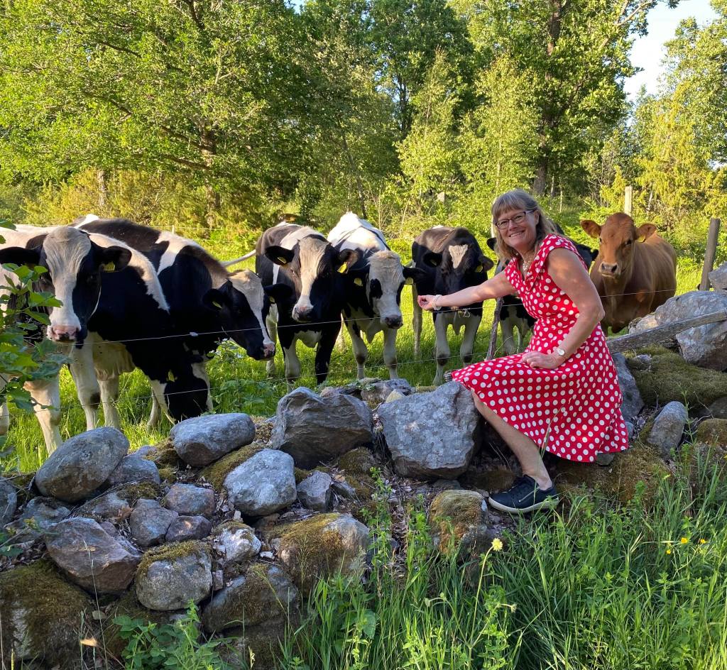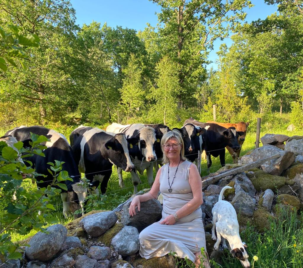 Min fina kusin Kyllike och jag tog en promenad med hunden. Vi gick upp till gården där Barbro och Kalle bodde under hela vår uppväxt. Där var vi ofta och hade mycket roligt. Det var så mysigt att bara få strosa där och minnas. Kylle och jag delade minnen med varandra. Man kommer ihåg olika saker. Därför är det bra att prata om gamla minnen och allra bäst att få göra det på plats. Min kusin Sven med fru Lotta driver nu gården och vi passade på att hälsa på några av djuren. Det var riktigt idylliskt.