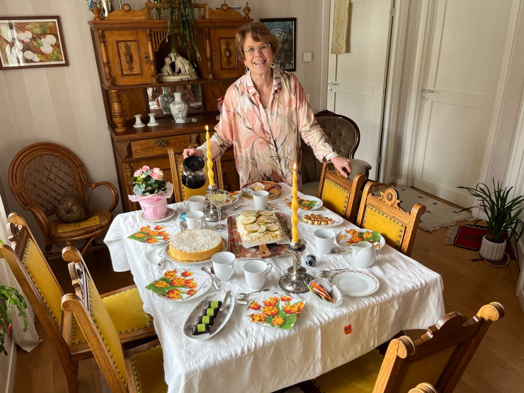 Sen blev det värsta födelsedagskalaset med bredda smörgåsar, pain au chocolat, kakor och bakelser. Vi hade en härlig pratstund där vi satt på deras inglasade altan med utsikt över vidderna.