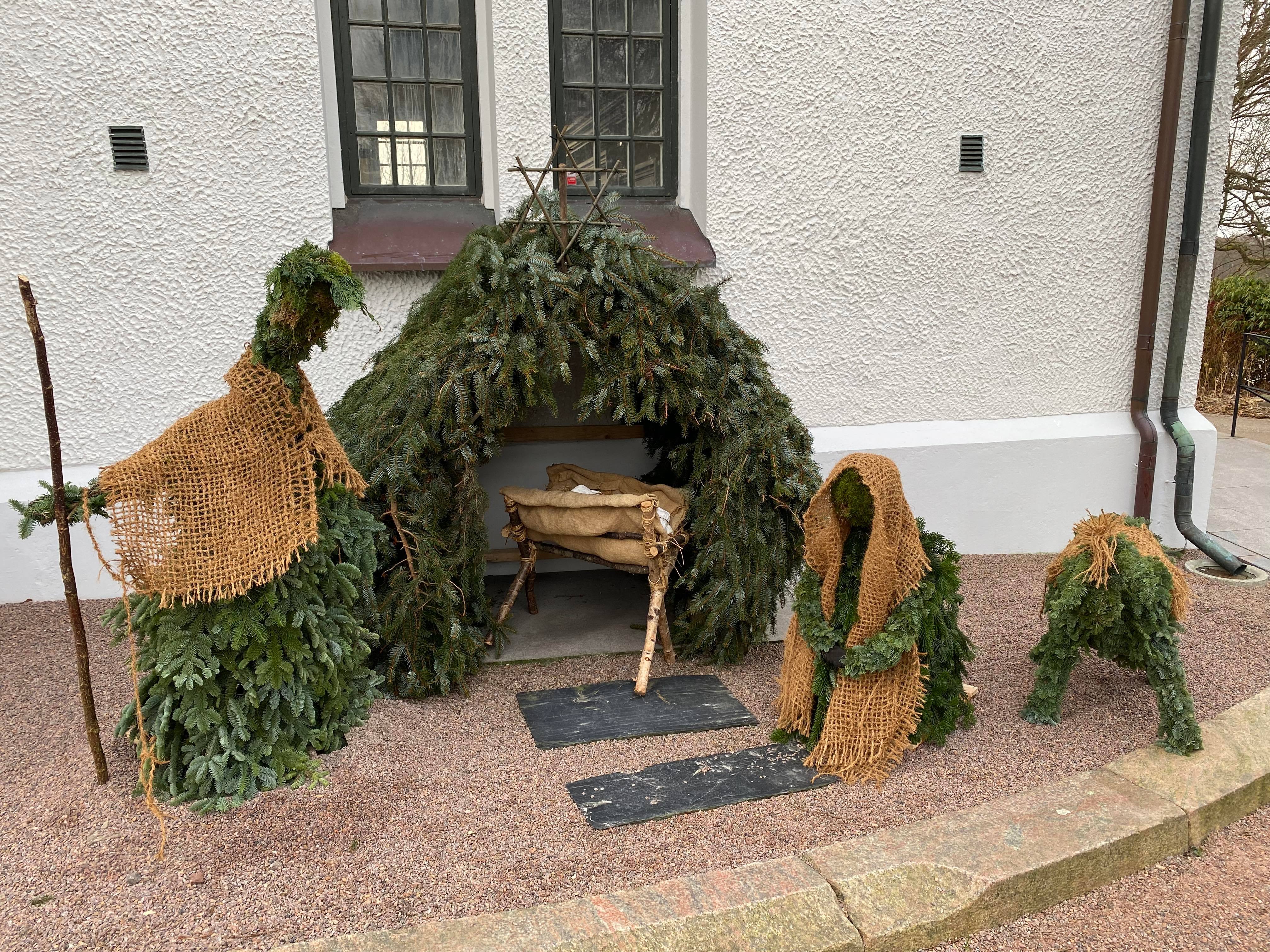 Vi fann en härlig julkrubba. Det lilla Jesusbarnet låg och sov så sött inne i krubban.